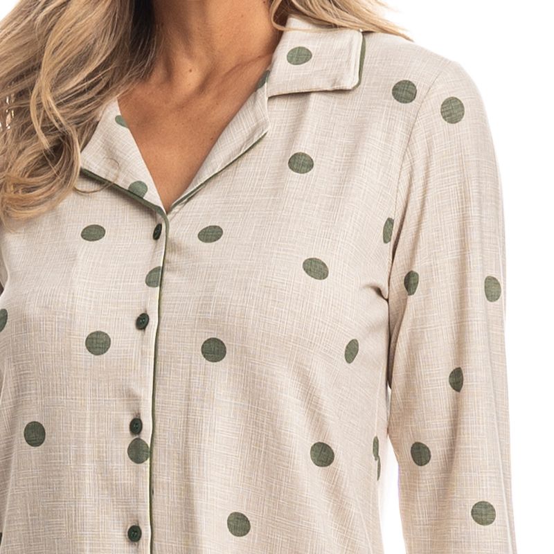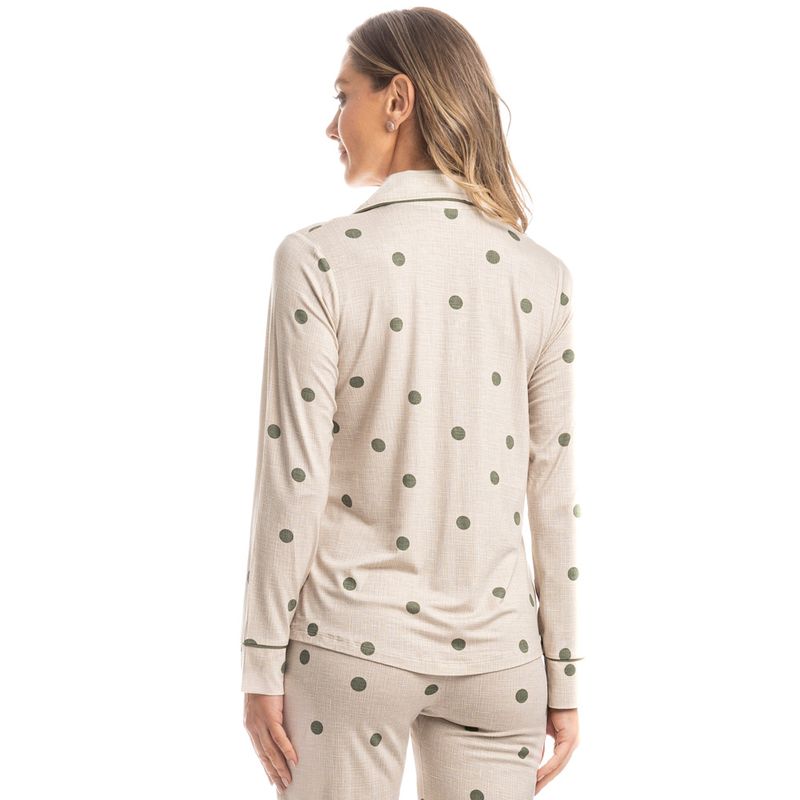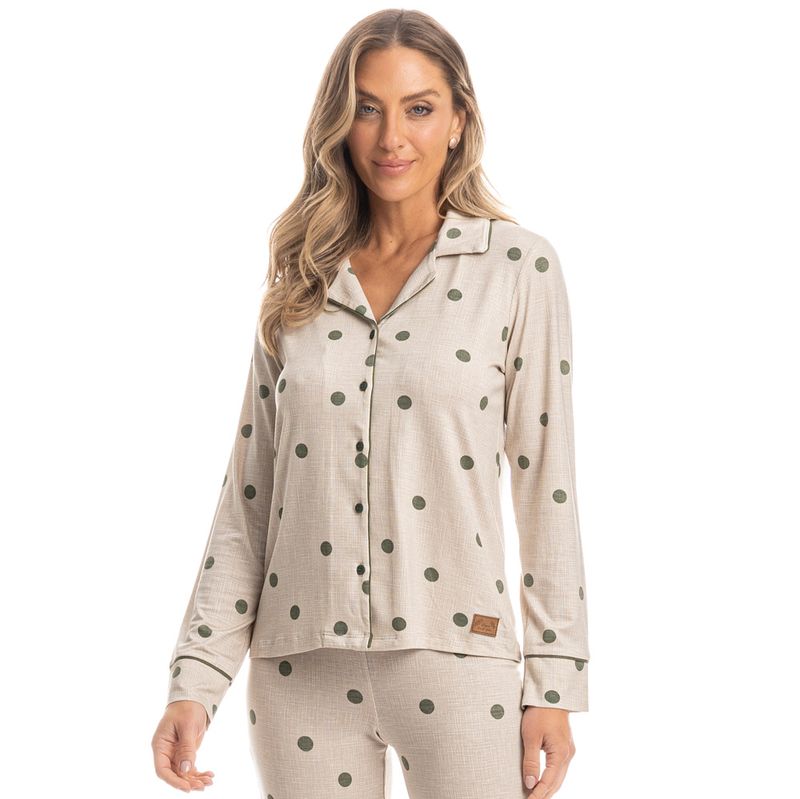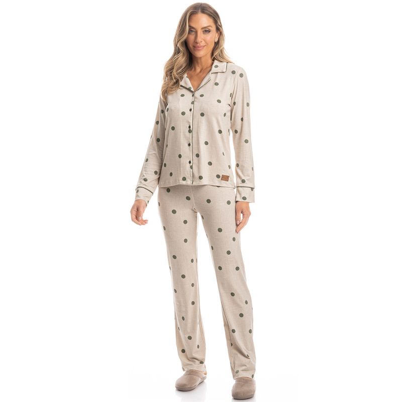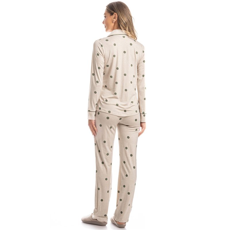 Pijama Feminino Longo Americano Clara é a elegância que você procurava! Sua blusa abotoada conta com acabamento em vivo contrastante aplicado em todo o transpasse, decote em gola e nos punhos das mangas, além de sua etiqueta personalizada Daniela Tombini na lateral inferior esquerda da peça, proporcionando ainda mais charme. Sua calça em modelagem confortável, possui elástico macio no cós, para melhor conforto em suas horas de descanso. A escolha perfeita para você aproveitar a melhor estação do ano!
