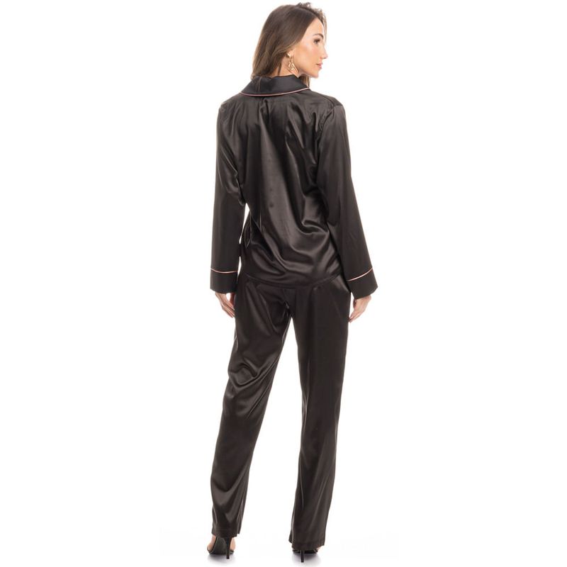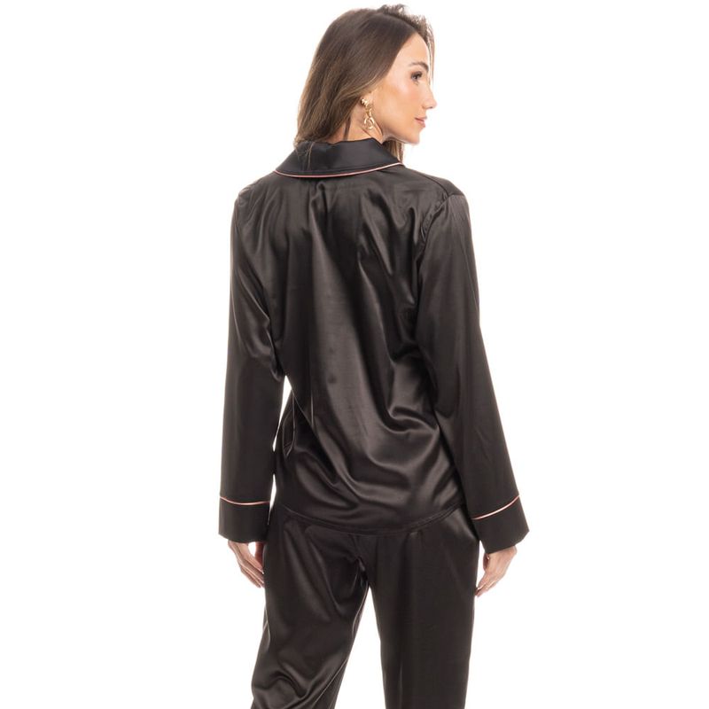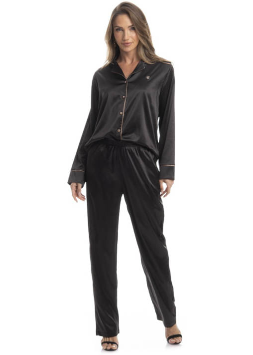 Pijama Feminino Longo Americano Cortiça é a elegância que você procurava! Sua blusa abotoada manga longa conta com acabamento em vivo contrastante aplicado em toda a abertura, gola e mangas, além do logo Daniela Tombini bordado na lateral esquerda da blusa, proporcionando ainda mais charme para a peça. Sua calça em modelagem confortável, possui elástico macio no cós, para melhor conforto em suas horas de descanso. A escolha perfeita para você aproveitar a melhor estação do ano!