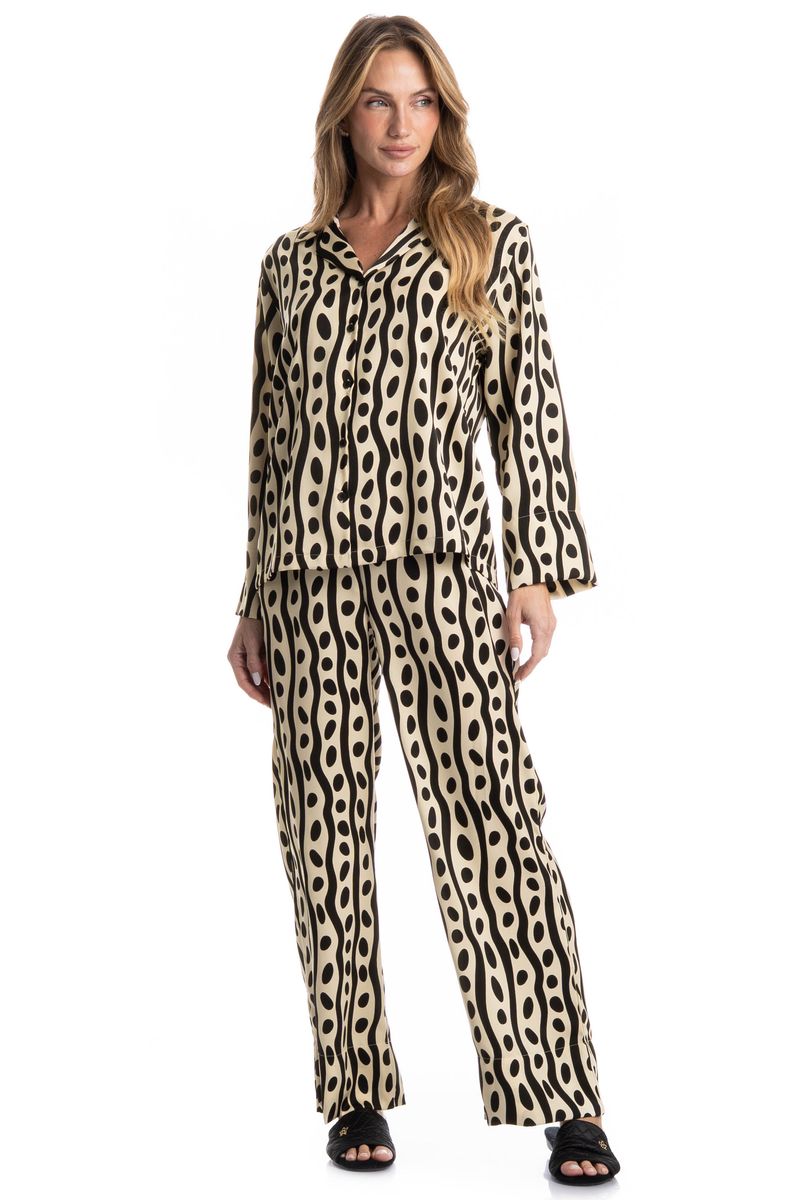 Pijama Feminino Longo Americano Lara é a elegância que você procurava! Sua blusa abotoada manga longa conta com acabamento em vivo aplicado em toda a abertura, gola e punhos das mangas. Sua calça em modelagem confortável, possui elástico macio no cós, para melhor conforto em suas horas de descanso. A escolha perfeita para você aproveitar a melhor estação do ano!