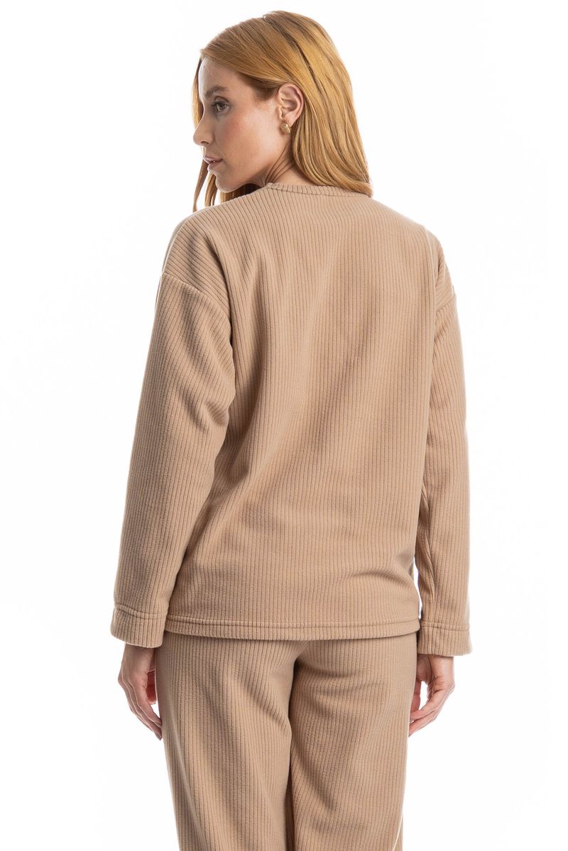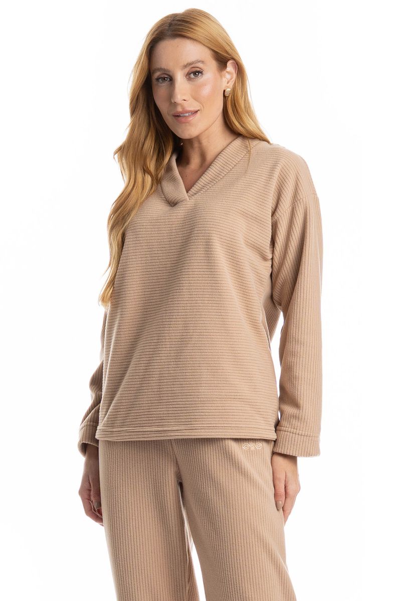 Confeccionado em Microsoft Canelado, tecido canelado que proporciona conforto térmico, mantendo o calor do corpo e promovendo alta dispersão do excesso de calor. Prático e funcional, apresenta secagem rápida, não amassa e oferece excelente resistência e estabilidade dimensional. O Microsoft canelado destaca-se pela alta durabilidade das cores e pelo tratamento anti-pilling, proporcionando o toque impecável do tecido por muito mais tempo. 100% poliéster.