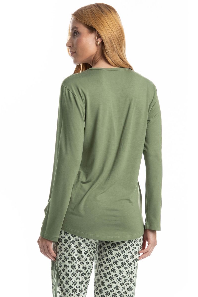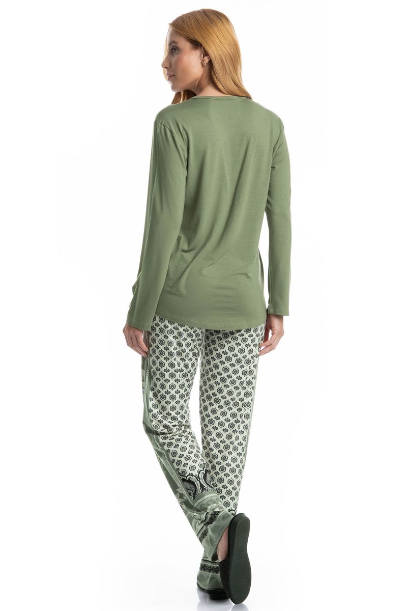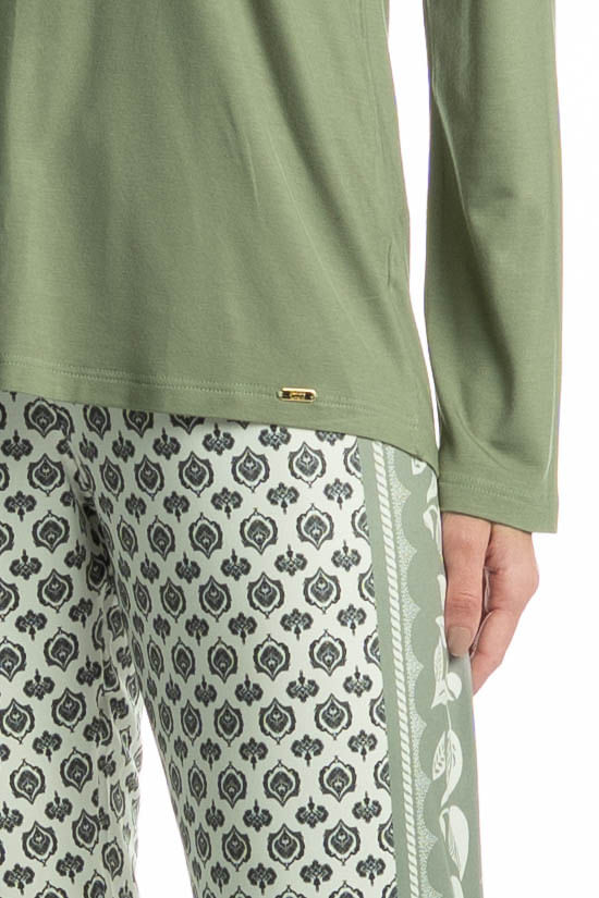 Pijama Feminino Longo Constanza é puro estilo! Sua blusa lisa manga longa possui decote redondo com acabamento em viés. Sua calça ampla e confortável possui elástico macio no cós, em uma linda estampa localizada exclusiva Daniela Tombini, para você aproveitar suas noites com muito estilo e conforto!