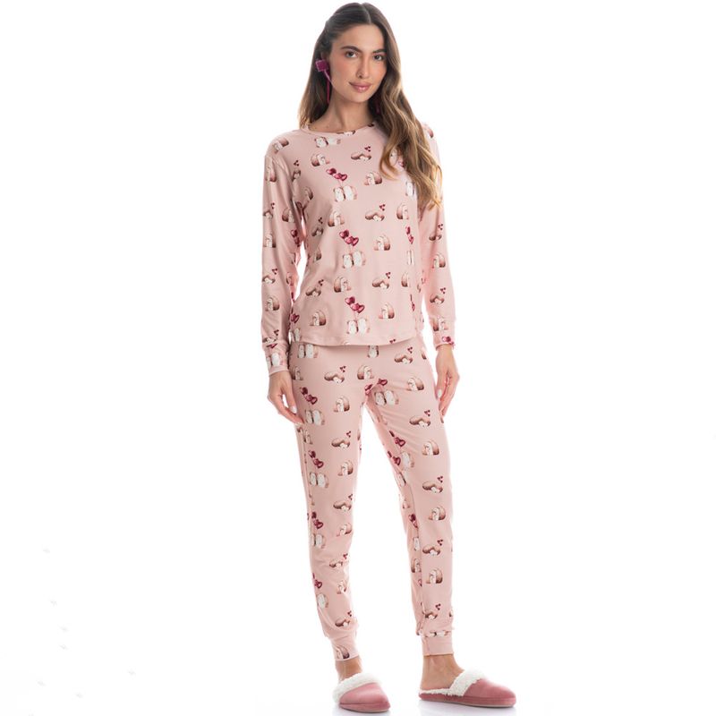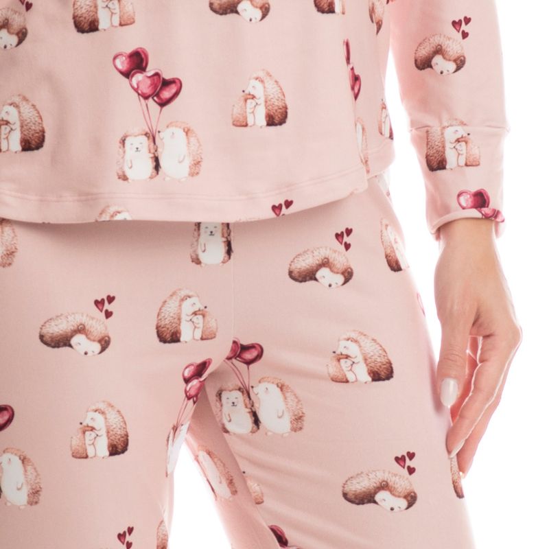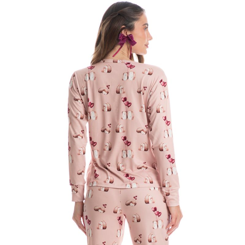 Pijama Feminino Longo Cute Love é conforto para suas horas de descanso! Sua blusa possui modelagem ampla e confortável, com decote redondo e acabamento em punho nas mangas. Sua calça em modelagem jogging com punho, possui elástico macio no cós para melhor conforto em suas noites do sono. Detalhe para sua linda e divertida estampa em uma incrível combinação de cores, impossível não se apaixonar!