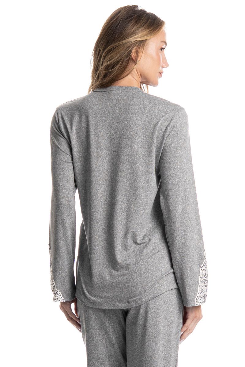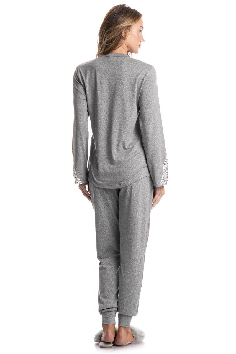 Pijama Feminino Longo Erica é puro conforto! Sua blusa em modelagem ampla, seu decote é redondo com acabamento em viés e conta com aplicação de uma linda e sofisticada renda. Detalhe para seu delicado e exclusivo bordado Daniela Tombini, garantindo muito charme à peça. Já sua calça em modelagem leve e soltinha, com punho na barra e um delicado laço no centro do cós. A escolha perfeita para você ficar ainda mais linda em seus momentos de descanso!