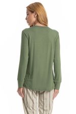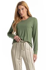 Pijama Feminino Longo Leila confortável e sofisticado, ideal para quem busca estilo aliado ao bem-estar. Composto por blusa de manga longa e calça longa, o modelo apresenta caimento leve e fluido, proporcionando liberdade de movimentos e toque macio sobre a pele. A blusa possui design minimalista, detalhe para o bordado Daniela Tombini na lateral esquerda, enquanto a calça conta com cós e falso amarre, detalhe para sua linda estampa. Versátil, é perfeito para momentos de descanso cheio de conforto e elegância!