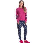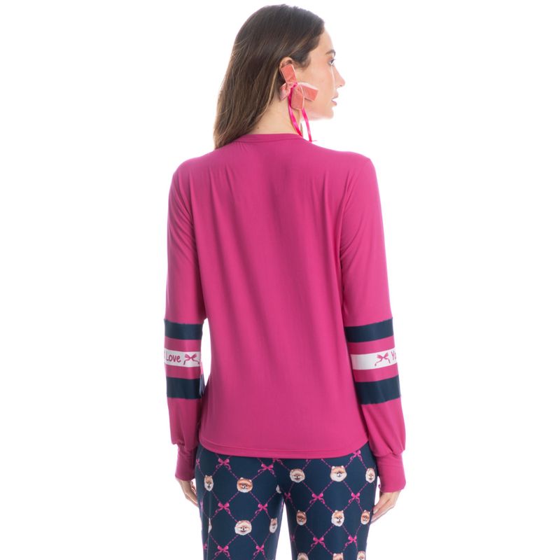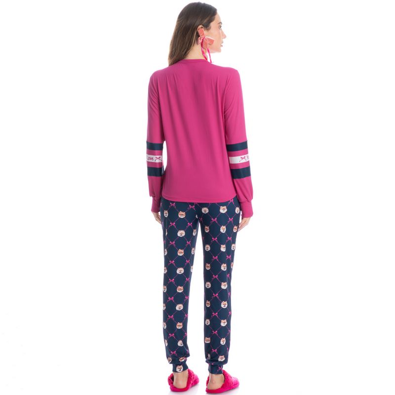 Pijama Feminino Longo Lyla Sweet é estilo para suas noites! Sua blusa em modelagem ampla e confortável possui manga longa com punhos e estampa localizada desenhada à mão, e seu decote é redondo debruado em viés. Detalhe para sua exclusiva etiqueta personalizada aplicada no centro da peça. Sua calça com punhos também muito confortável estampada com nossa mascote Lyla e laços, possui elástico macio no cós para um melhor descanso. Perfeito para te acompanhar durante os melhores momentos!