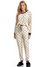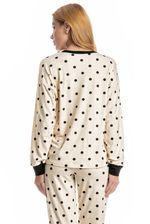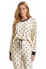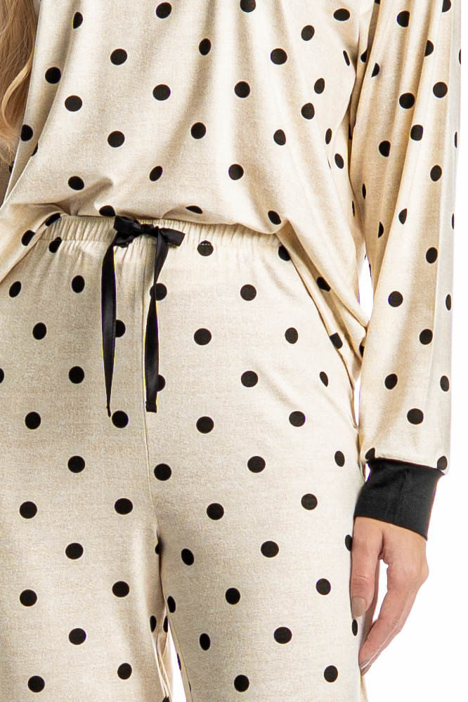 Pijama Feminino Longo Sabrina confortável e sofisticado, ideal para quem busca estilo aliado ao bem-estar. Composto por blusa de manga longa e calça longa, o modelo apresenta caimento leve e fluido, proporcionando liberdade de movimentos e toque macio sobre a pele. A blusa possui design minimalista, enquanto a calça conta com cós e falso amarre, detalhe para sua linda estampa de poá. Versátil, é perfeito para momentos de descanso cheio de conforto e elegância!