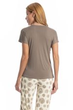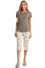 Pijama Feminino Pescador Ágata é puro estilo! Sua blusa lisa possui manga curta e decote redondo debruado em viés. Sua calça conta com uma exclusiva estampa, e modelagem pescador ampla e confortável, com elástico macio no cós para melhor descanso. Detalhe para sua delicada plaquinha Daniela Tombini localizada na lateral esquerda. Muito estilo e conforto para suas noites de verão!