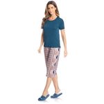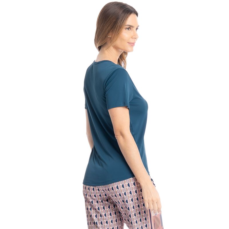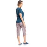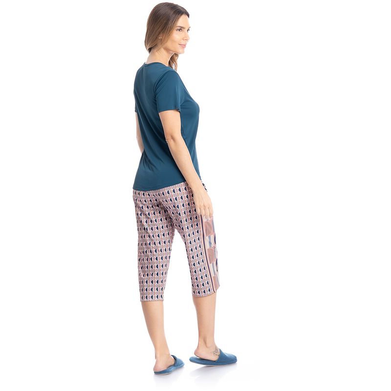Pijama Feminino Pescador Catarina é pura elegância! Sua blusa em modelagem ampla muito confortável, possui mangas curtas e seu decote é redondo debruado em viés. Detalhe para sua plaquinha logo Daniela Tombini na lateral inferior esquerda da peça. Já sua calça possui modelagem pescador, é toda estampada e conta com elástico macio no cós garantindo muito conforto em seus momentos de descanso!