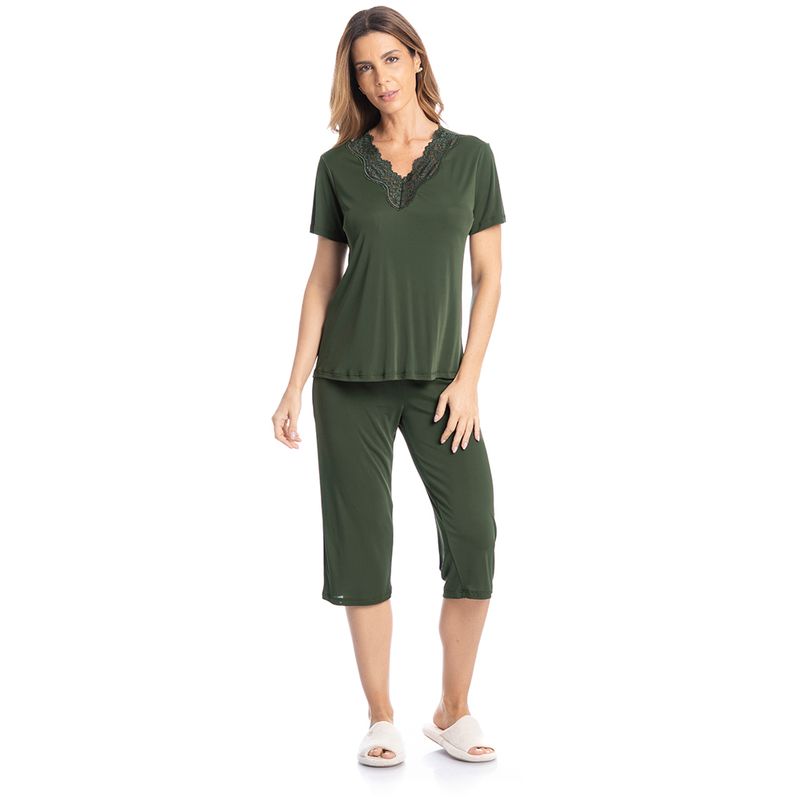 Pijama Feminino Pescador Com Renda Amanda é conforto para suas noites! Em modelagem ampla e muito confortável, seu decote em V possui aplicação de uma linda e delicada renda, e como detalhe sua plaquinha Daniela Tombini nas costas. Já a sua calça possui modelagem pescador e conta com elástico macio no cós.