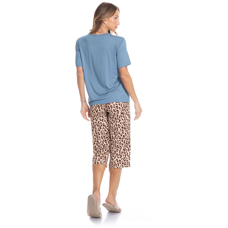 Pijama Feminino Pescador Com Renda Felina é conforto para suas noites! Sua blusa em modelagem ampla e muito confortável, possui mangas curtas e decote em V com aplicação de uma sofisticada renda. Já a sua calça possui modelagem pescador e conta com uma linda e exclusiva estampa animal print.