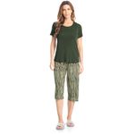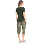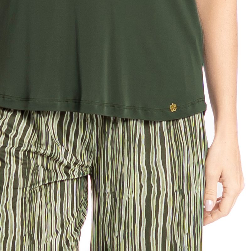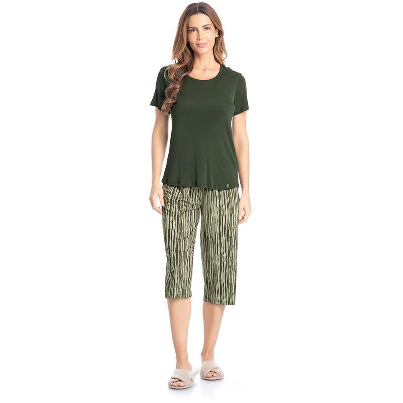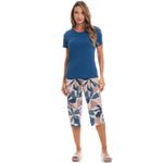 Pijama Feminino Pescador Elen é puro conforto! Em modelagem ampla e confortável, sua blusa lisa manga curta possui decote redondo com acabamento em viés. Detalhe para a delicada plaquinha logo Daniela Tombini na lateral inferior esquerda da peça. Já a sua calça estampada em modelagem pescador conta com elástico macio e confortável no cós.