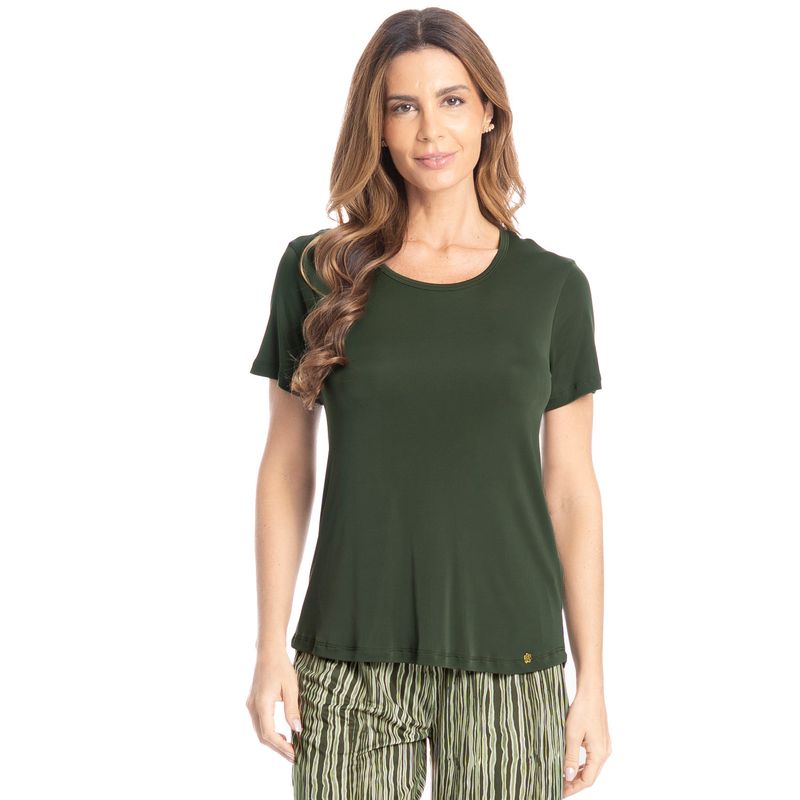 Sua blusa confeccionada em Liganete Microfibra Amni, tecido de poliamida característico pelo seu toque de malha fria, caimento leve e de fácil cuidado. A composição do tecido conta com a excelência do fio Rhodia Amni de alta qualidade.