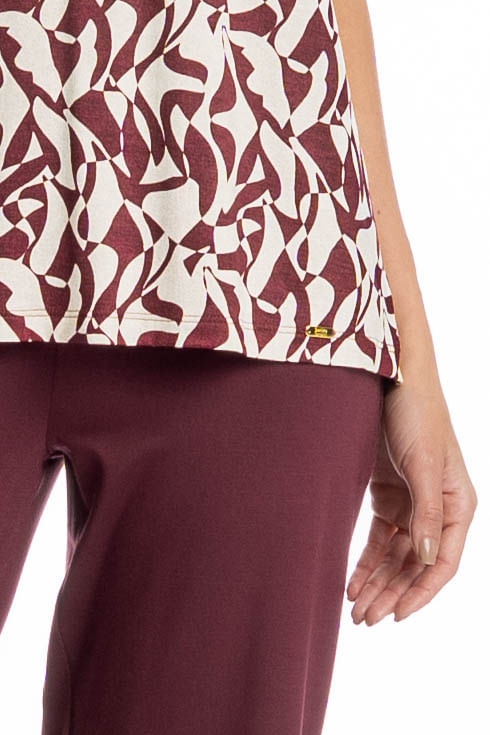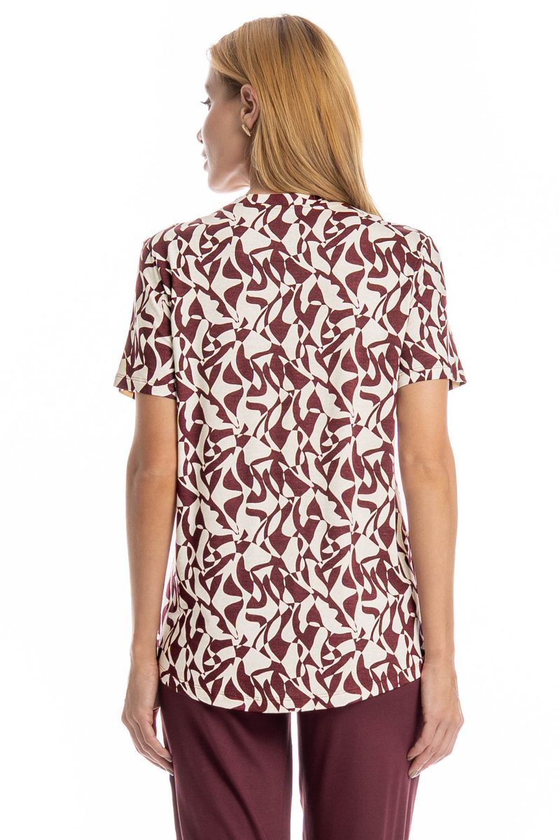 Pijama Feminino Pescador Ligia é puro conforto! Em modelagem ampla e confortável, sua blusa manga curta possui decote redondo. Detalhe para a delicada plaquinha Daniela Tombini na lateral inferior esquerda da peça. Já a sua calça conta com modelagem pescador e elástico macio e confortável no cós.
