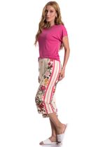 Pijama Feminino Pescador Luisa é puro estilo! Sua blusa lisa possui manga curta e decote redondo debruado em viés. Sua calça conta com uma exclusiva estampa localizada desenhada à mão, e modelagem pescador ampla e confortável, com elástico macio no cós para melhor descanso. Detalhe para sua delicada etiqueta logo de cetim no centro do cós.