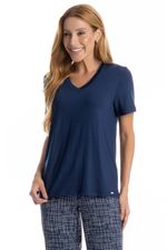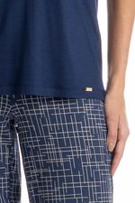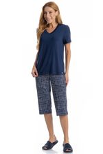 Pijama Feminino Pescador Thais é puro conforto! Em modelagem ampla e confortável, sua blusa lisa manga curta possui decote em V. Detalhe para a delicada plaquinha Daniela Tombini na lateral inferior esquerda da peça. Já a sua calça com uma linda estampa, conta com modelagem pescador e elástico macio e confortável no cós.