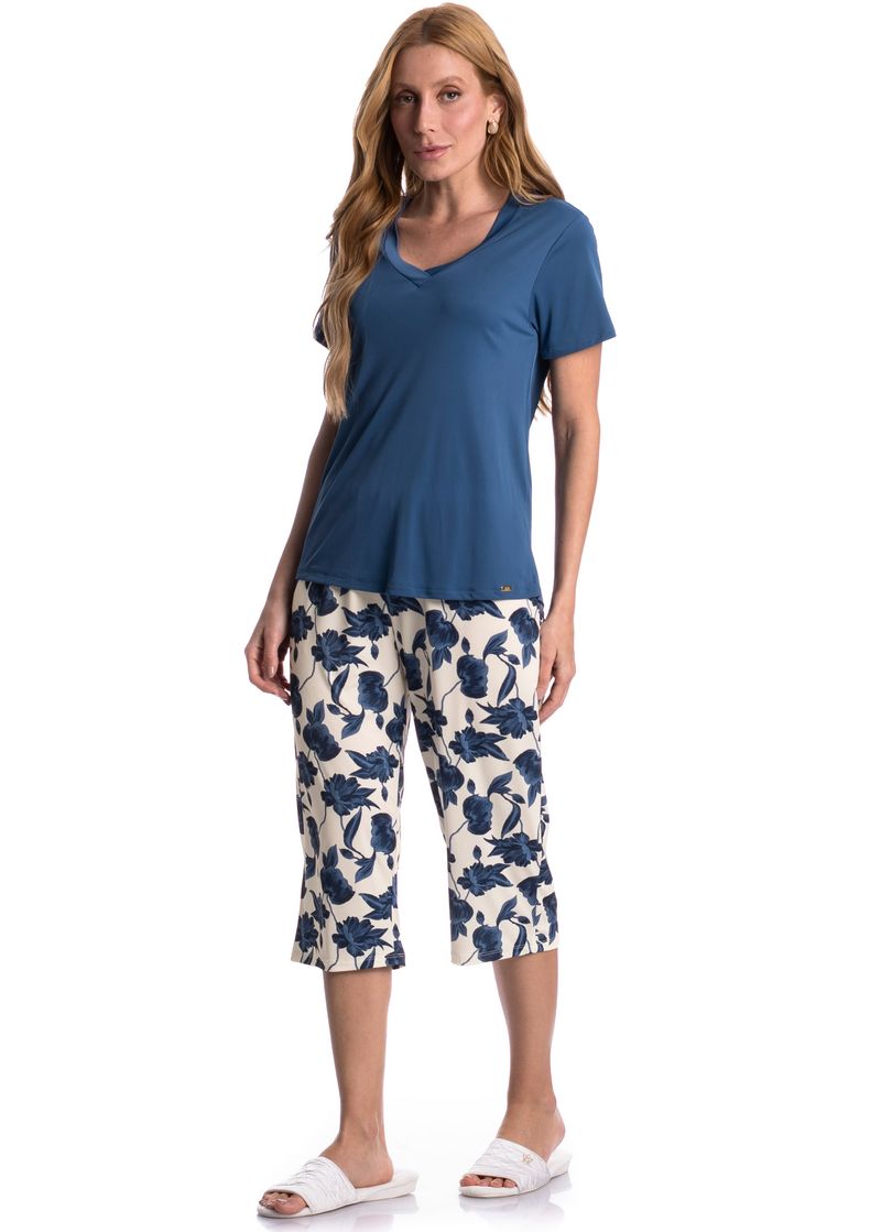 Pijama Feminino Pescador Verano é puro conforto! Em modelagem ampla e confortável, sua blusa lisa manga curta possui decote com acabamento em gola V. Detalhe para a delicada plaquinha Daniela Tombini na lateral inferior esquerda da peça. Já a sua calça estampada em um lindo floral, conta com modelagem pescador e elástico macio e confortável no cós.