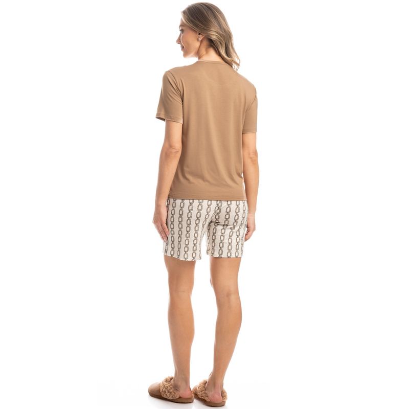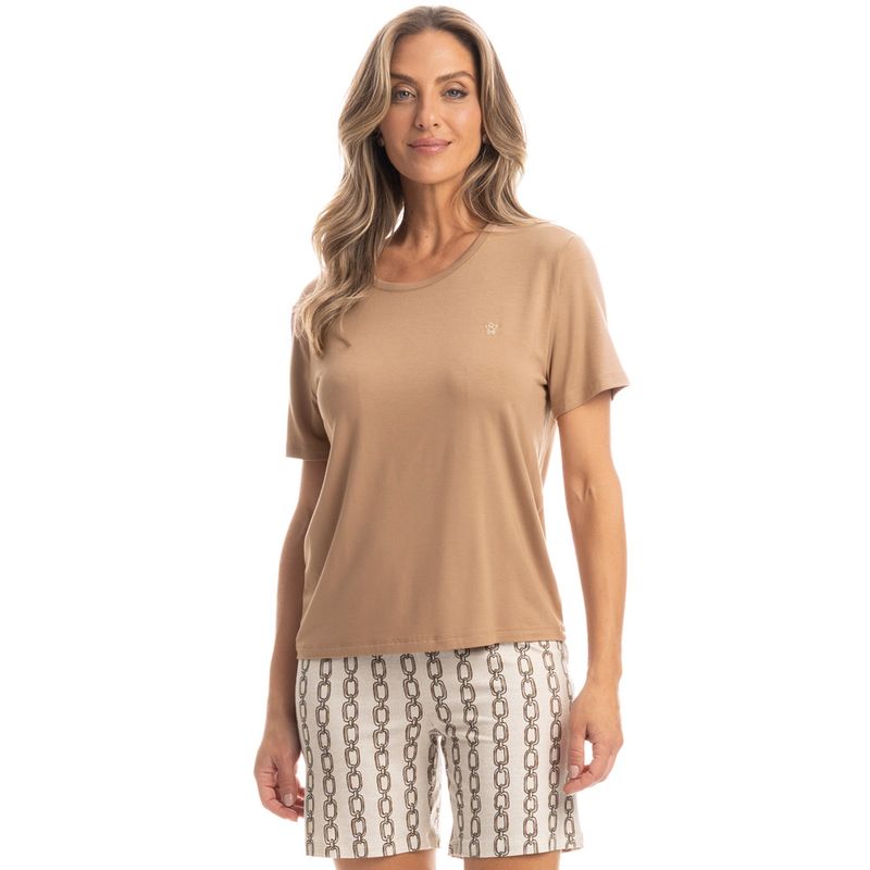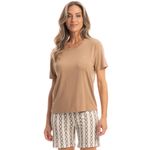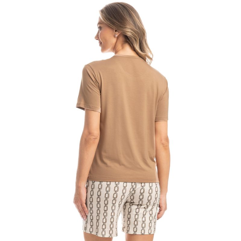 Pijama Feminino Shortão Correntes é puro estilo! Em modelagem ampla e confortável sua blusa lisa possui manga curta, e como detalhe bordado logo Daniela Tombini na lateral esquerda da peça. Já o seu shorts estampado em correntes, possui modelagem ampla e confortável com elástico macio no cós. A escolha perfeita para você aproveitar a melhor estação do ano!