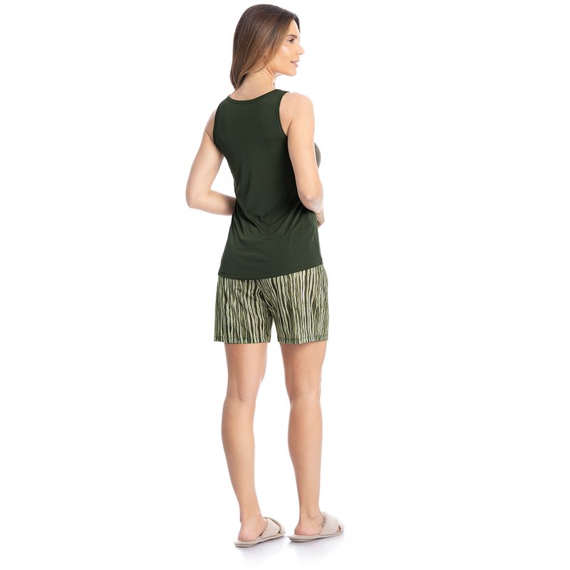 Pijama Feminino Shortão Regata Elen é pura elegância! Em modelagem ampla, com um tecido de toque surpreendente, o pijama Elen é perfeito para seu Verão. Sua blusa regata possui decote redondo com acabamentos em viés. Detalhe para sua plaquinha logo Daniela Tombini na lateral inferior esquerda da peça. Seu shorts é todo estampado e possui elástico macio no cós para melhor descanso!