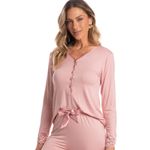 Pijama Feminino Wide Leg Com Abertura Carolina é puro chame! Em modelagem muito confortável, sua blusa possui decote em V com abertura frontal com perfeito acabamento e botões bem fixados. Suas mangas são longas com aplicação de renda na barra. Sua calça possui modelagem Wide Leg, sendo uma opção bem moderna e confortável para seus dias. Conta com detalhe de laço de cetim no centro do cós e uma linda e delicada renda em suas laterais. Em duas opções de cores para você aproveitar a melhor estação do ano!