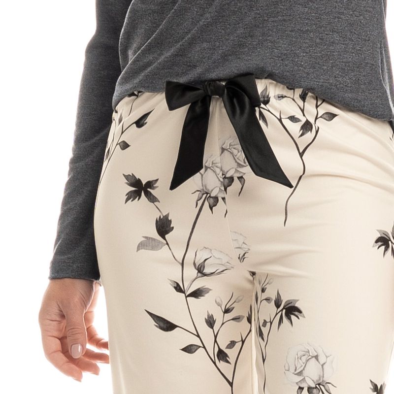 Pijama Feminino Wide Leg Rosa é pura elegância! Sua blusa em manga longa, possui decote redondo com acabamento em viés. Detalhe para seu bordado logo Daniela Tombini na lateral esquerda da peça. Sua calça estampada possui modelagem Wide Leg, sendo uma opção bem moderna e confortável para seus dias. Conta com um delicado laço no centro do cós. Muito conforto e estilo para suas noites!