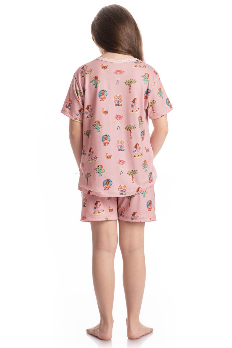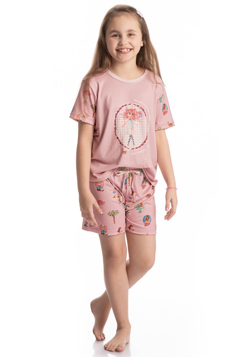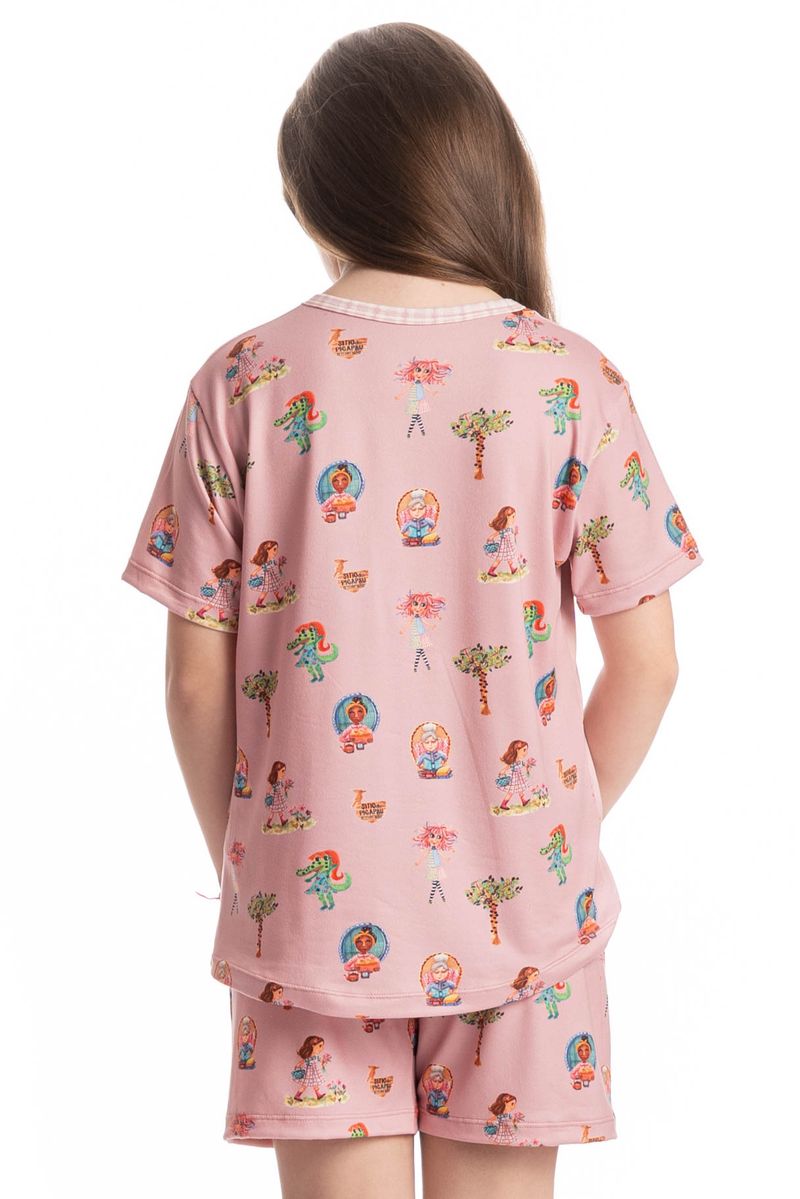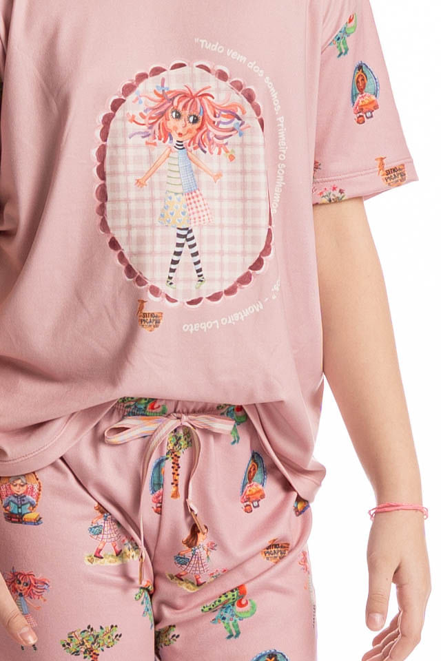 Pijama Infantil Curto Sítio Do Picapau Amarelo é puro charme! Sua blusa manga curta possui modelagem ampla e decote redondo debruado em viés de estampa contrastante. Seu short também em modelagem leve, possui falso amarre e elástico macio no cós. Detalhe para sua linda estampa exclusiva desenhada à mão da boneca Emília localizada ao centro da blusa, junto com a frase do Monteiro Lobato “Tudo vem dos sonhos, primeiro sonhamos, depois fazemos”. Já as mangas e o shorts conta com os personagens do sítio do picapau amarelo, impossível não se apaixonar!