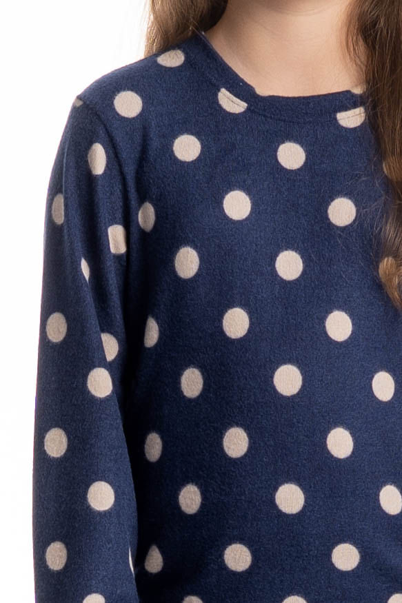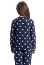Pijama Infantil Longo Mel é puro charme! Em modelagem ampla e confortável, seu decote é redondo e suas mangas são longas com acabamentos em punhos. Sua calça com modelagem confortável, possui acabamento na barra em punho, e elástico macio no cós para um melhor descanso. Conta com uma linda estampa exclusiva de poá!