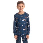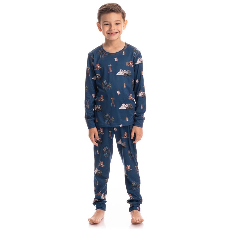 Pijama Infantil Longo Unissex Trekking é estilo para suas noites! Sua blusa em modelagem ampla e confortável possui manga longa com punho, decote redondo com acabamento em viés e trançador de tom contrastante. Sua calça com punhos possui modelagem leve, e conta com elástico macio no cós, para melhor conforto em suas horas de descanso. Impossível não se apaixonar!