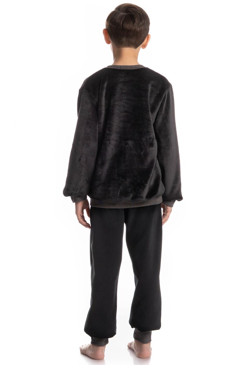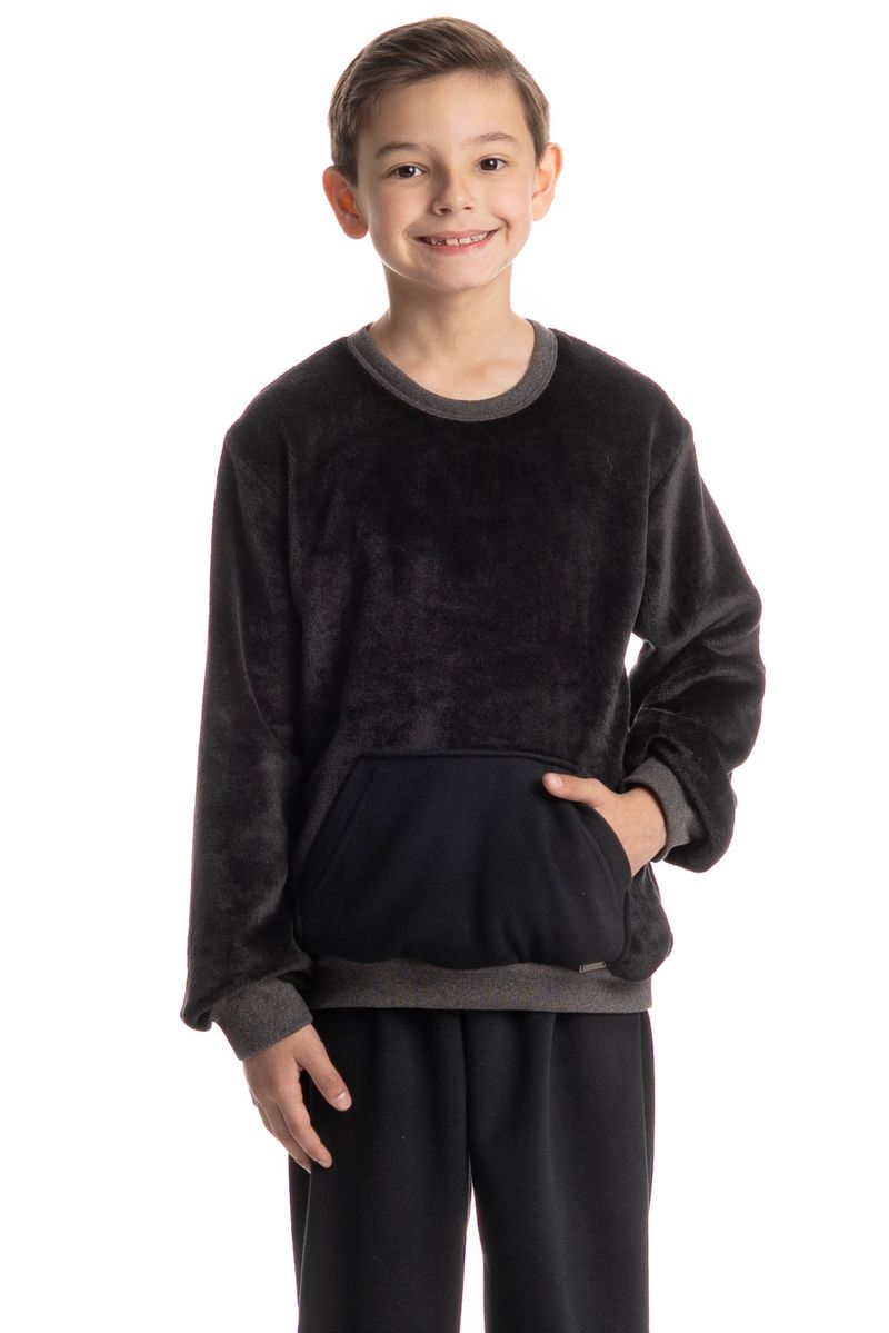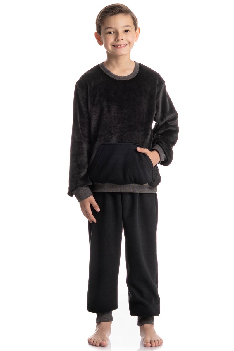 Pijama Infantil Masculino Longo Benício é aliado ao conforto! Sua blusa manga longa com decote redondo, conta com uma modelagem ampla e confortável com um perfeito acabamento em ribanas no decote e nos punhos das mangas. Detalhe para seu bolso frontal. Sua calça possui elástico macio e confortável proporcionando o melhor descanso, e punhos na barra impedindo que a peça suba durante a noite.