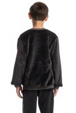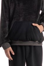 Ambas as peças feitas em Fleece, tecido sintético leve, macio, com ambos os lados escovados. Feito de fibras finíssimas, que permite criar uma superfície uniforme e densa. Entre os fios da superfície cria-se uma camada de ar que cria efeito de isolamento térmico, em consequência a pele fica seca e quente, e assim, o corpo é protegido do frio.