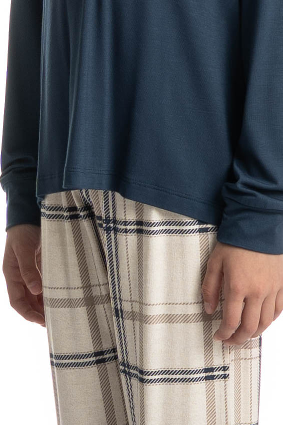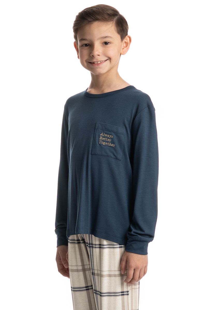 Pijama Infantil Unissex Longo Winter é excelente para suas noites! Em modelagem muito confortável, sua blusa manga longa possui decote redondo com acabamento em viés. Detalhe para o bolso na lateral esquerda com a escrita “Always Better Together”. Sua calça muito confortável, possui uma moderna e exclusiva estampa xadrez. Muito estilo e conforto para estar com você nas melhores horas do seu dia!