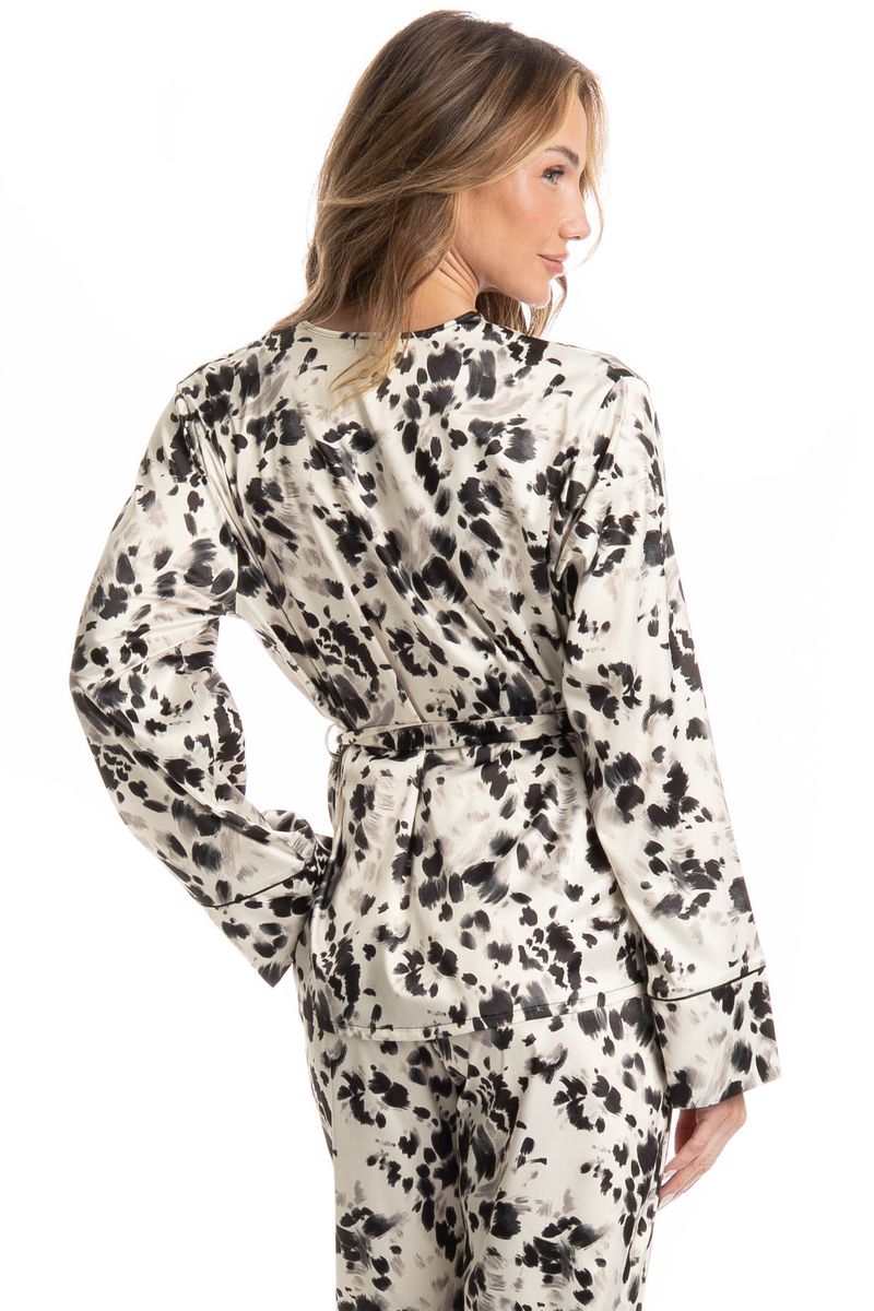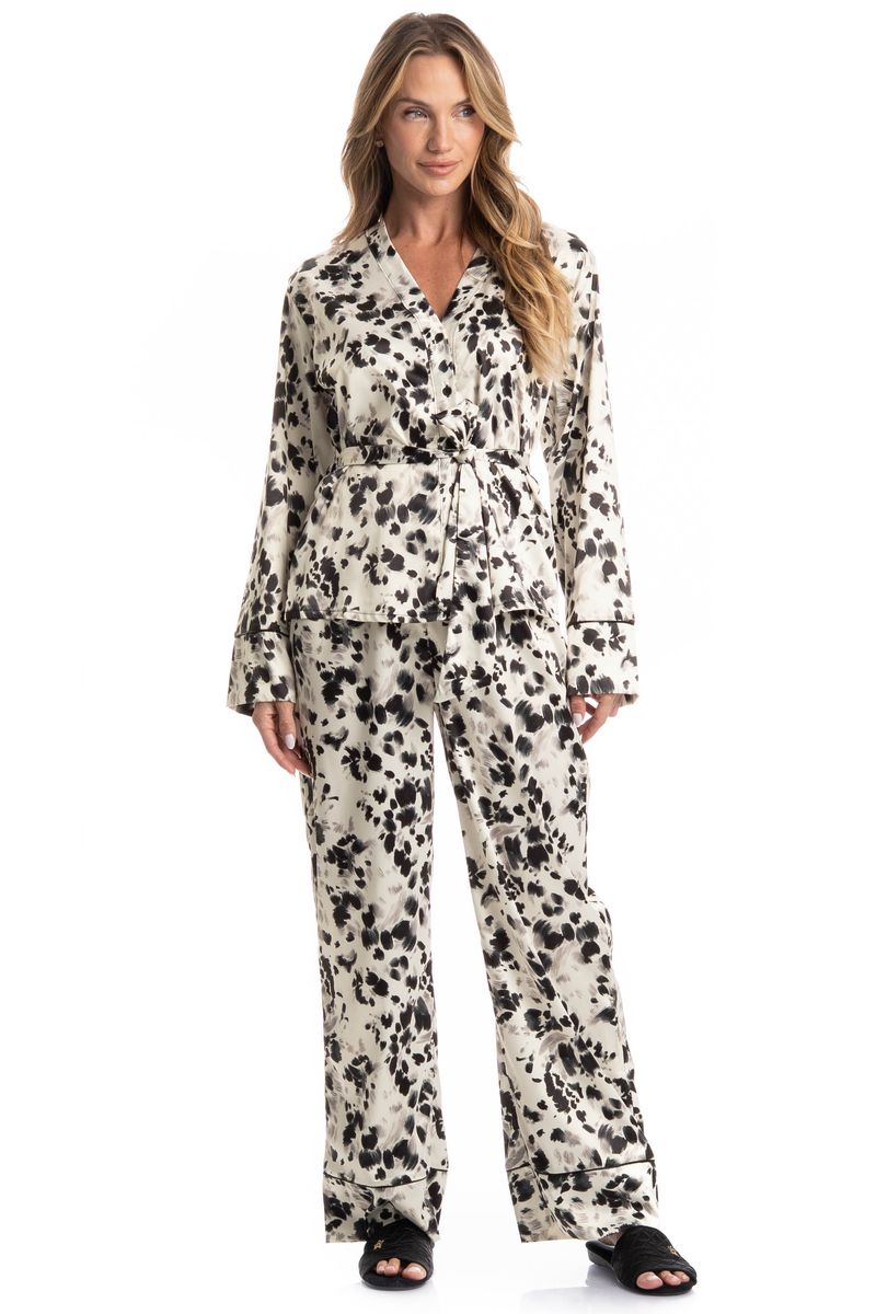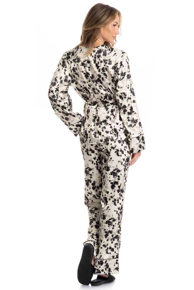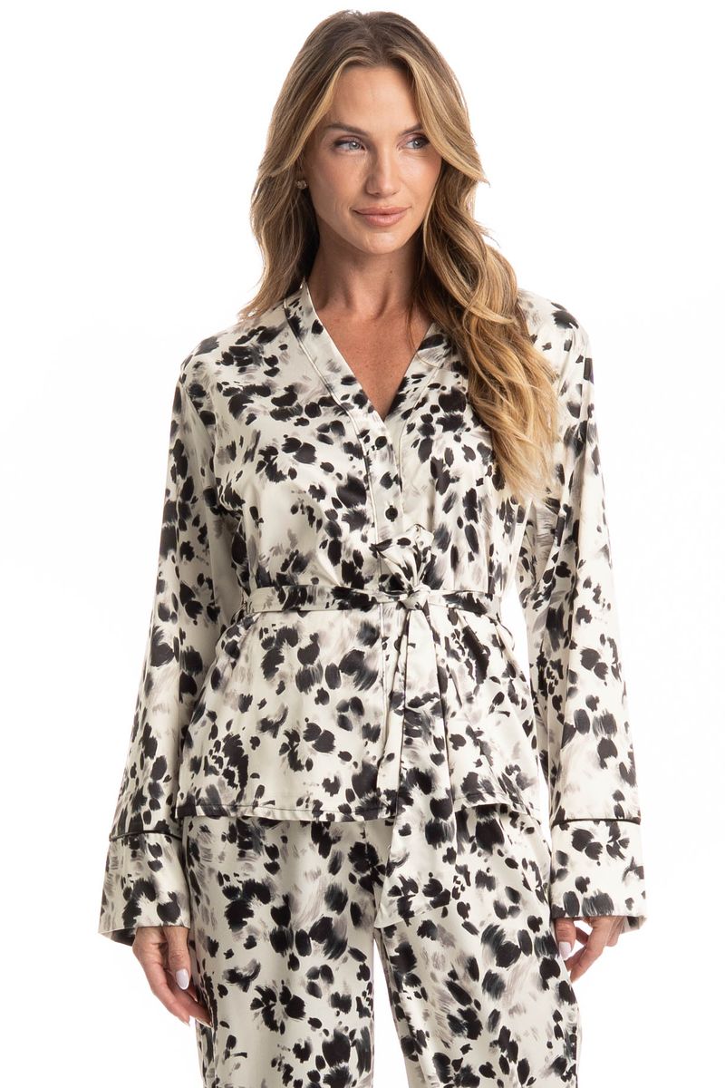 Pijama Longo Americano Com Faixa Helen confeccionado em tecido leve e macio, proporcionando conforto e um toque suave na pele. Possui blusa com gola estilo camisa e fechamento transpassado com amarração lateral, que valoriza o visual e garante um ajuste delicado ao corpo. A calça longa conta com caimento solto e estampa harmoniosa, trazendo charme e sofisticação ao conjunto. Ideal para quem busca conforto aliado a um design elegante para os momentos de descanso!