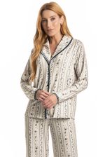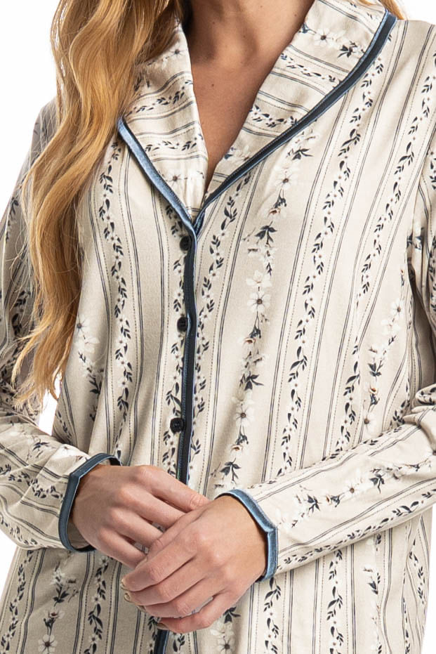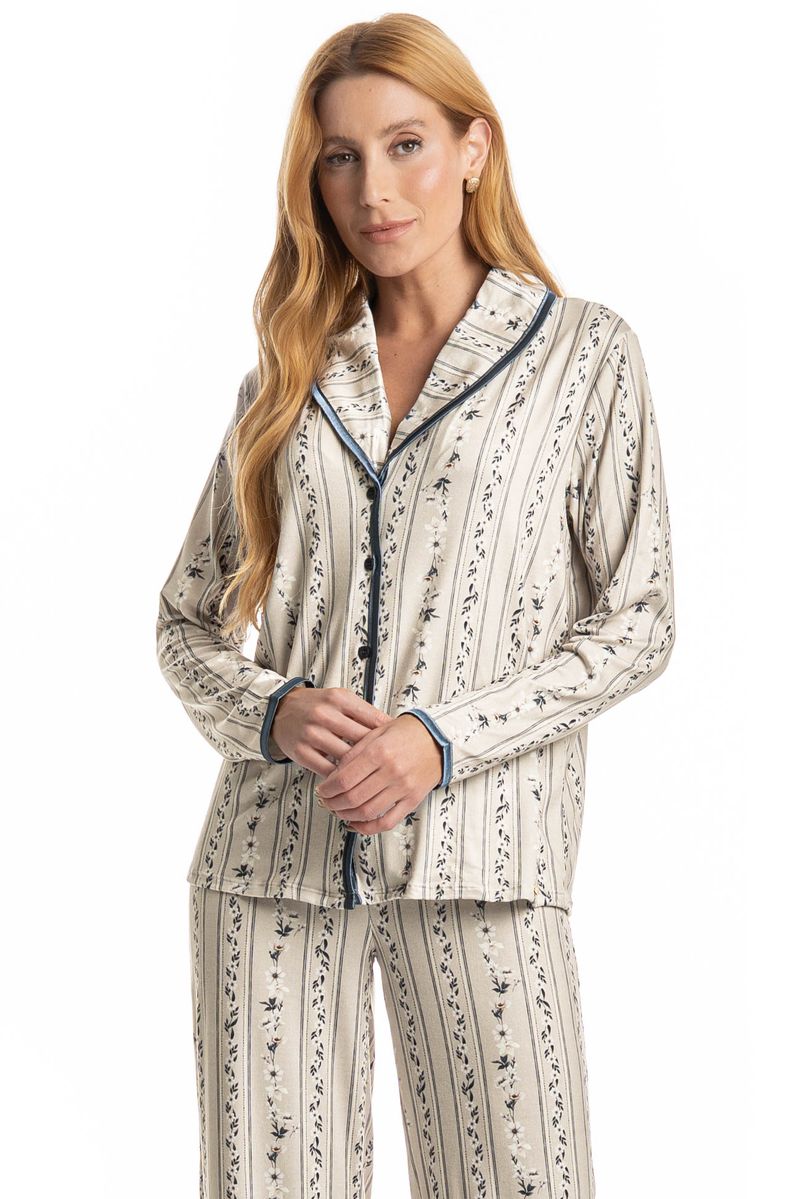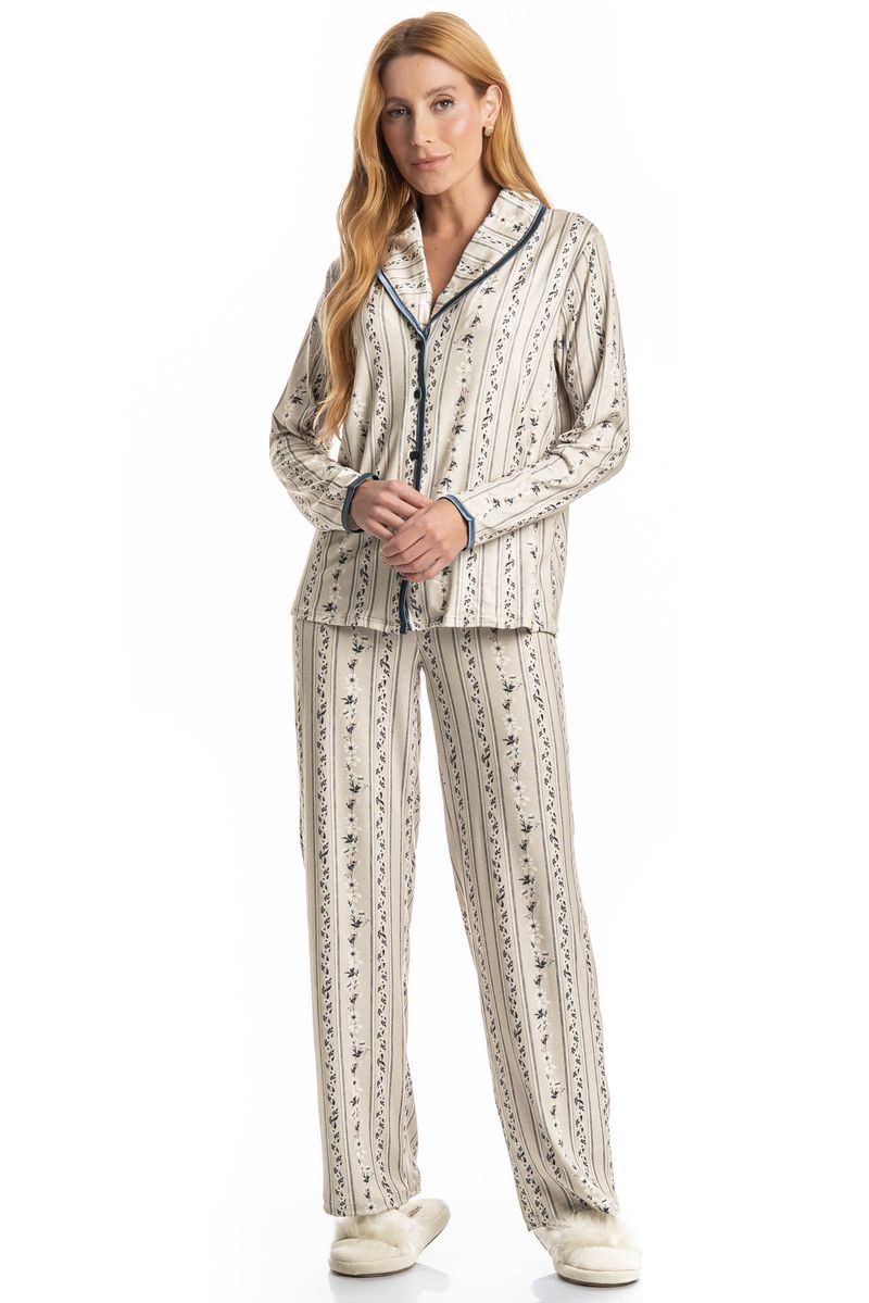 Pijama Longo Americano Nina é puro conforto! Em modelagem muito confortável, sua blusa abotoada manga longa possui um perfeito acabamento em gola e botões bem fixados. Sua calça possui elástico macio e confortável no cós proporcionando um melhor descanso. Detalhe para sua linda e exclusiva estampa floral. A escolha perfeita para você desfrutar o melhor da estação!