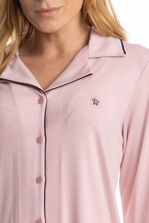 Pijama Longo Americano Samantha é puro conforto! Em modelagem muito confortável, sua blusa abotoada manga longa possui um perfeito acabamento em gola e botões bem fixados. Sua calça possui elástico macio e confortável no cós proporcionando um melhor descanso. A escolha perfeita para você desfrutar o melhor da estação!