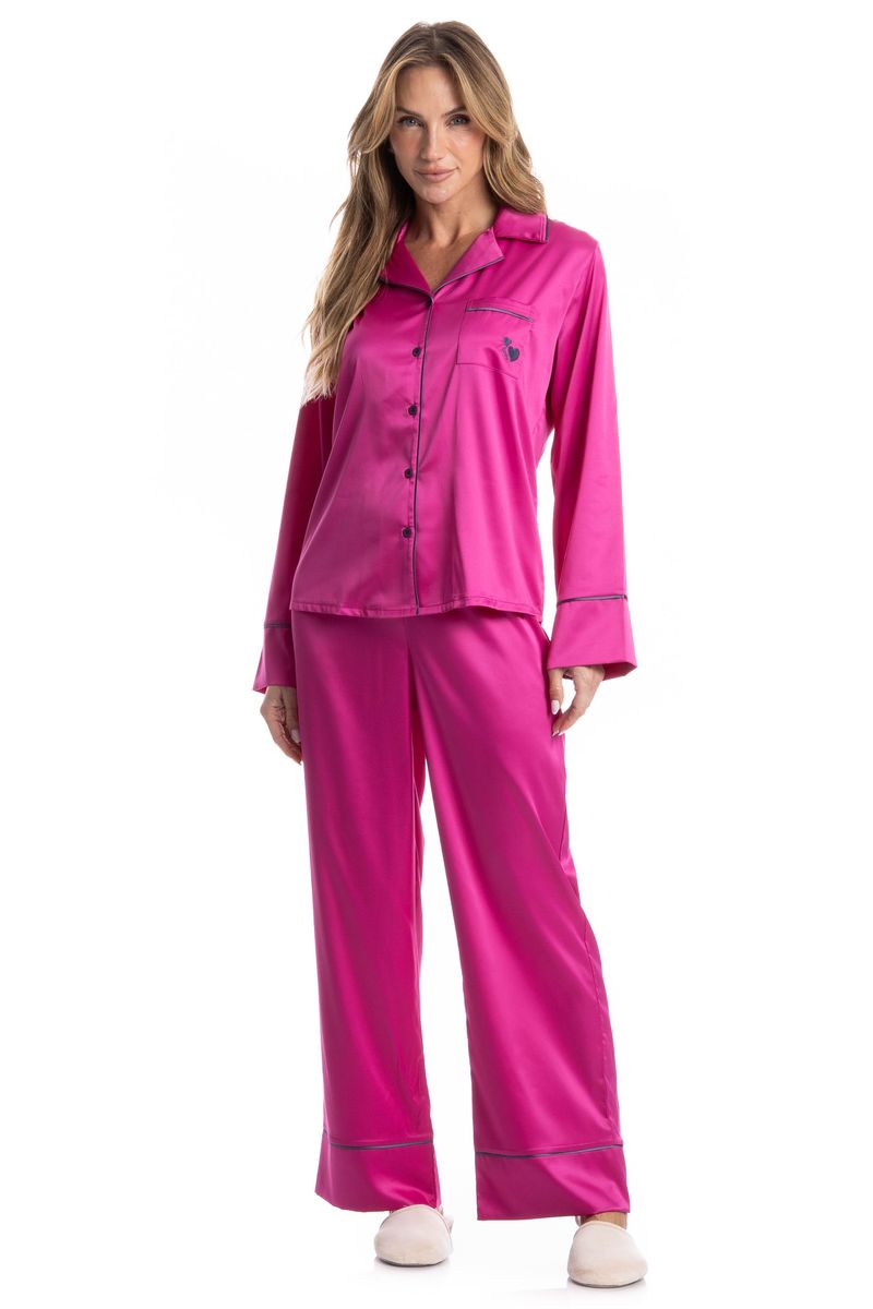 Pijama Longo Americano Valentine é a elegância que você procurava! Sua blusa abotoada manga longa conta com acabamento em vivo contrastante aplicado em toda a abertura, gola e mangas, proporcionando ainda mais charme para a peça. Sua calça em modelagem confortável, possui elástico macio no cós, para melhor conforto em suas horas de descanso. A escolha perfeita para você aproveitar a melhor estação do ano!