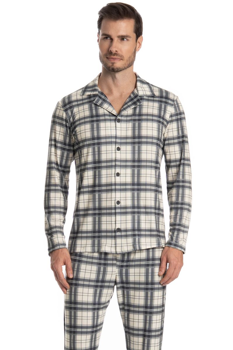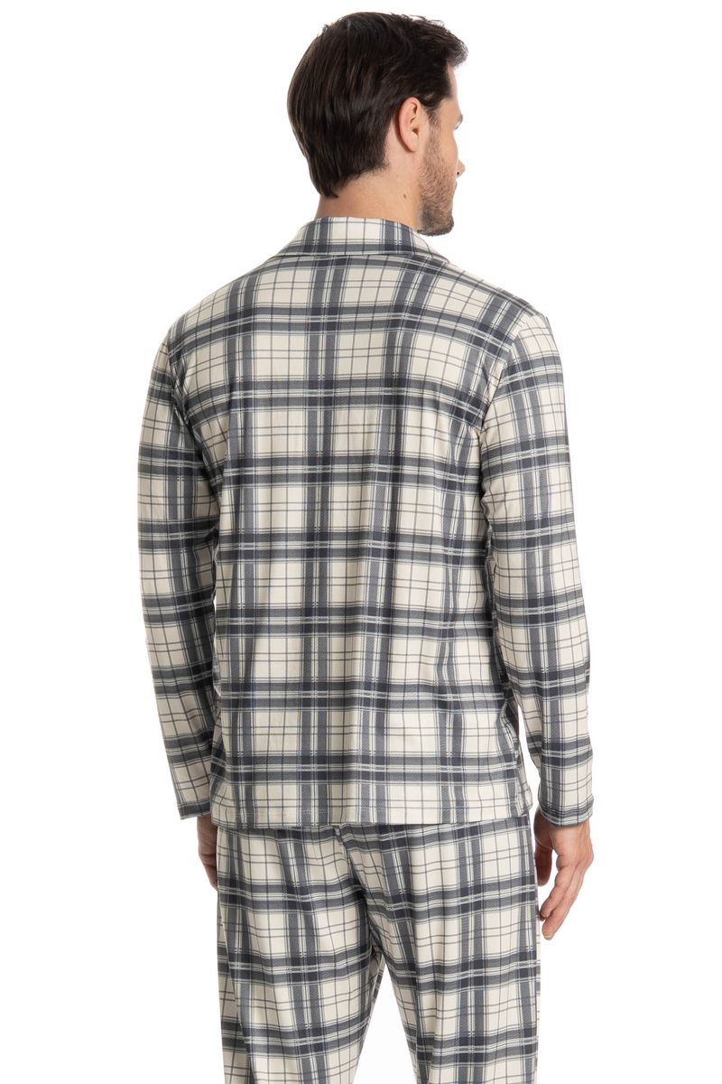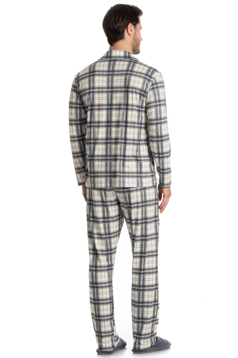 O Pijama Longo Americano Vicente é ideal para quem busca conforto e estilo. A blusa, com manga longa e corte amplo, se ajusta bem a qualquer corpo, conta com botões bem fixados, detalhe para sua linda e exclusiva estampa xadrez que dão um toque especial à peça. A calça também oferece muito conforto, perfeita para momentos de descanso. Este pijama vai além de ser apenas uma roupa para dormir, ele é uma escolha elegante para quem valoriza bem-estar e moda no guarda-roupa noturno!