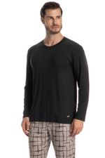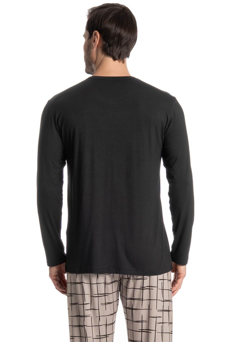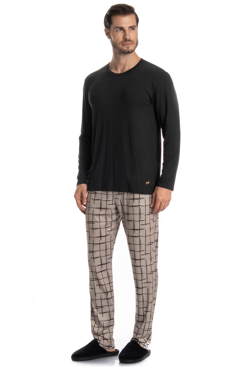 Pijama Longo Felipe é perfeito para suas noites! Em modelagem muito confortável, sua blusa manga longa possui decote redondo com acabamento em viés. Detalhe para seu bordado Tombini na lateral inferior esquerda. Já sua calça em modelagem ampla e confortável, é todo estampado e possui elástico macio no cós que garante muito conforto para as horas de descanso!
