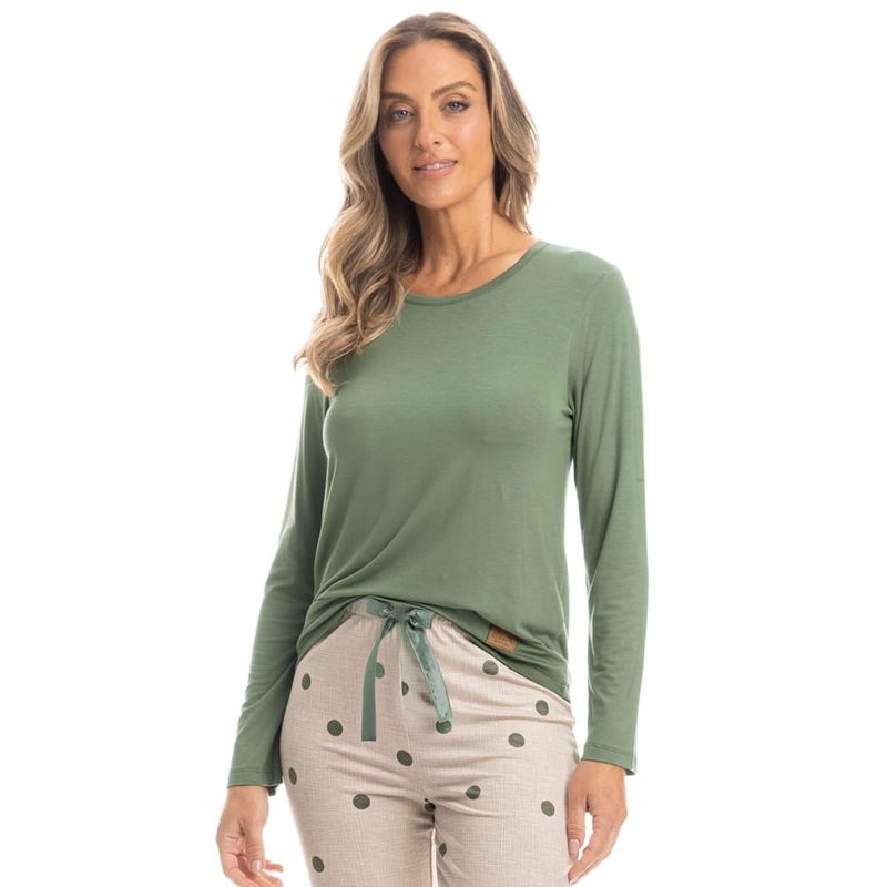 Pijama Longo Feminino Clara é pura elegância! Em modelagem ampla e confortável, sua blusa manga longa possui decote redondo com acabamento em viés. Detalhe para sua etiqueta personalizada Daniela Tombini na lateral inferior esquerda da peça. Já a sua calça em modelagem longa e ampla, possui elástico macio no cós lhe proporcionando um maior conforto e um lindo laço de cetim no centro do cós. Tudo para você ficar ainda mais linda na melhor estação do ano!