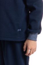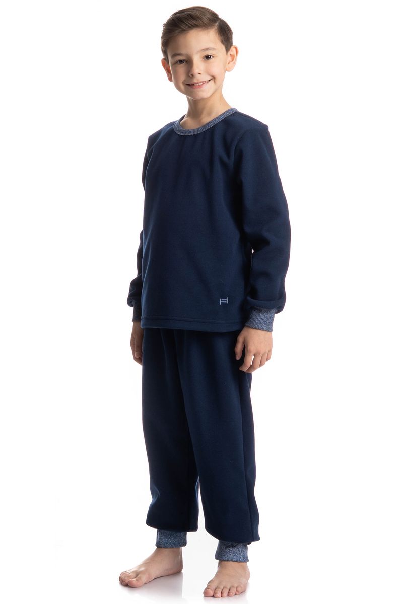 Pijama Longo Infantil Pedro é perfeito para seu inverno! Sua blusa lisa em modelagem ampla e confortável, possui decote redondo com aplicação de gola e mangas longas com punho. Detalhe para seu bordado Tombini em tom contrastante na lateral esquerda da peça. Sua calça é ampla e também muito confortável com punhos impedindo que a peça suba durante a noite.