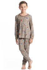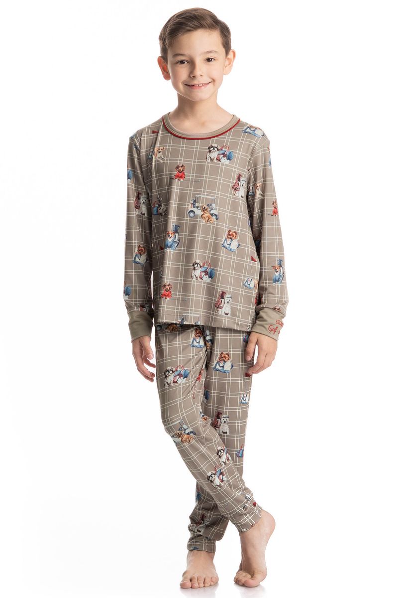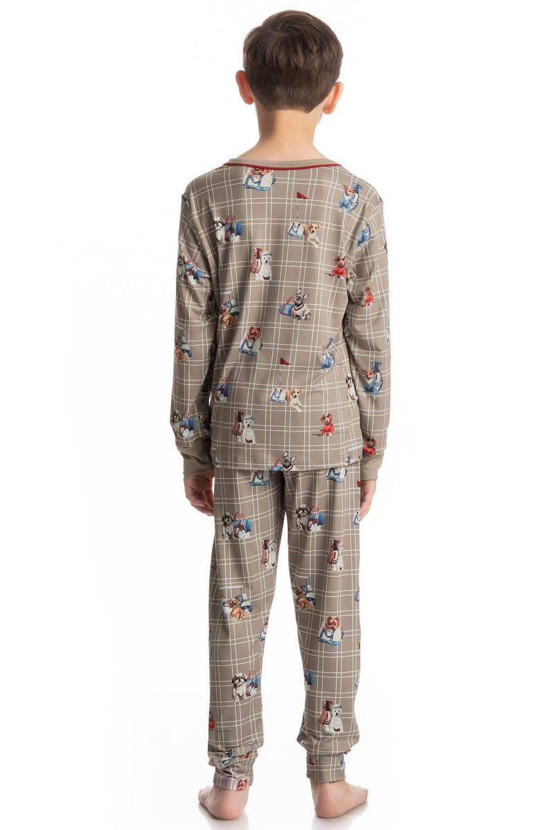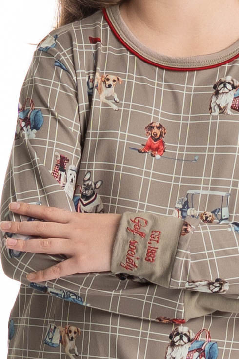 Pijama Longo Infantil Unissex Dogs Golf é estilo para suas noites! Sua blusa em modelagem ampla e confortável possui manga longa, e estampa localizada desenhada à mão de cães com acessórios de golf, e seu decote é redondo debruado em viés. Sua calça com punhos também muito confortável, possui elástico macio no cós para um melhor descanso. Perfeito para te acompanhar durante os melhores momentos!