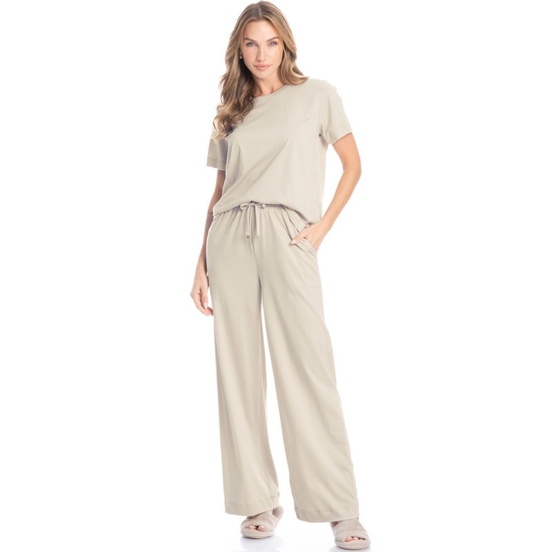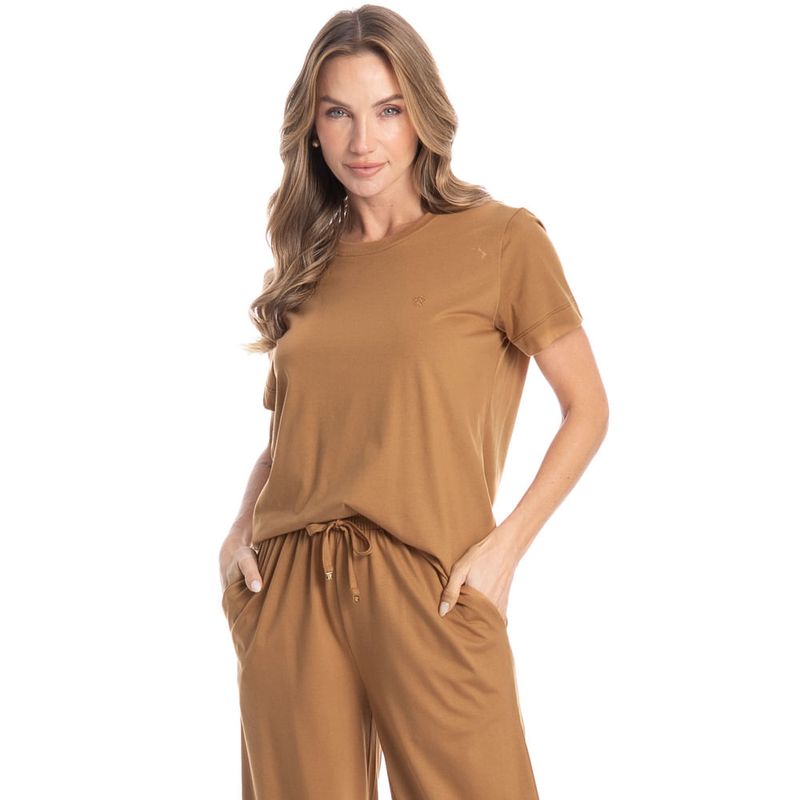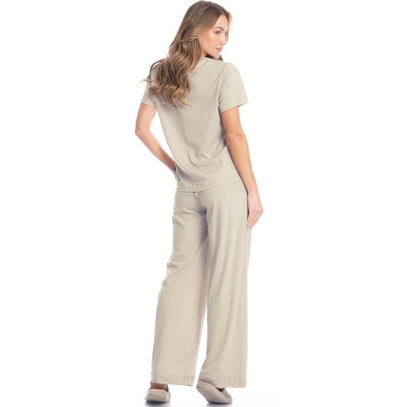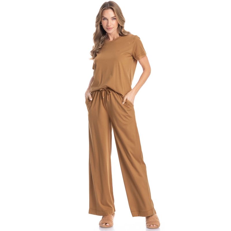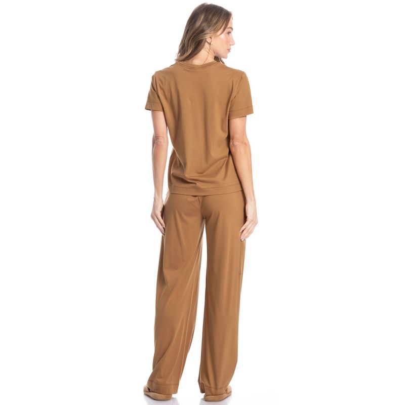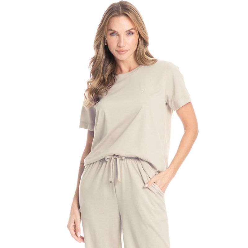 Pijama Longo Manga Curta Com Bolso Duda é o conforto que você precisa! Sua blusa é de manga curta com decote redondo em acabamento em gola. Detalhe para seu bordado logo Daniela Tombini na lateral esquerda da peça. Sua calça possui bolso estilo faca, e falso amarre no cós garantindo muito estilo. São duas opções de cores para estar com você nas melhores horas do dia!