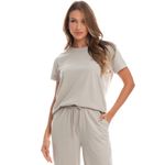 Pijama Longo Manga Curta Com Bolso Duda é o conforto que você precisa! Sua blusa é de manga curta com decote redondo em acabamento em gola. Detalhe para seu bordado logo Daniela Tombini na lateral esquerda da peça. Sua calça possui bolso estilo faca, e falso amarre no cós garantindo muito estilo. São duas opções de cores para estar com você nas melhores horas do dia!