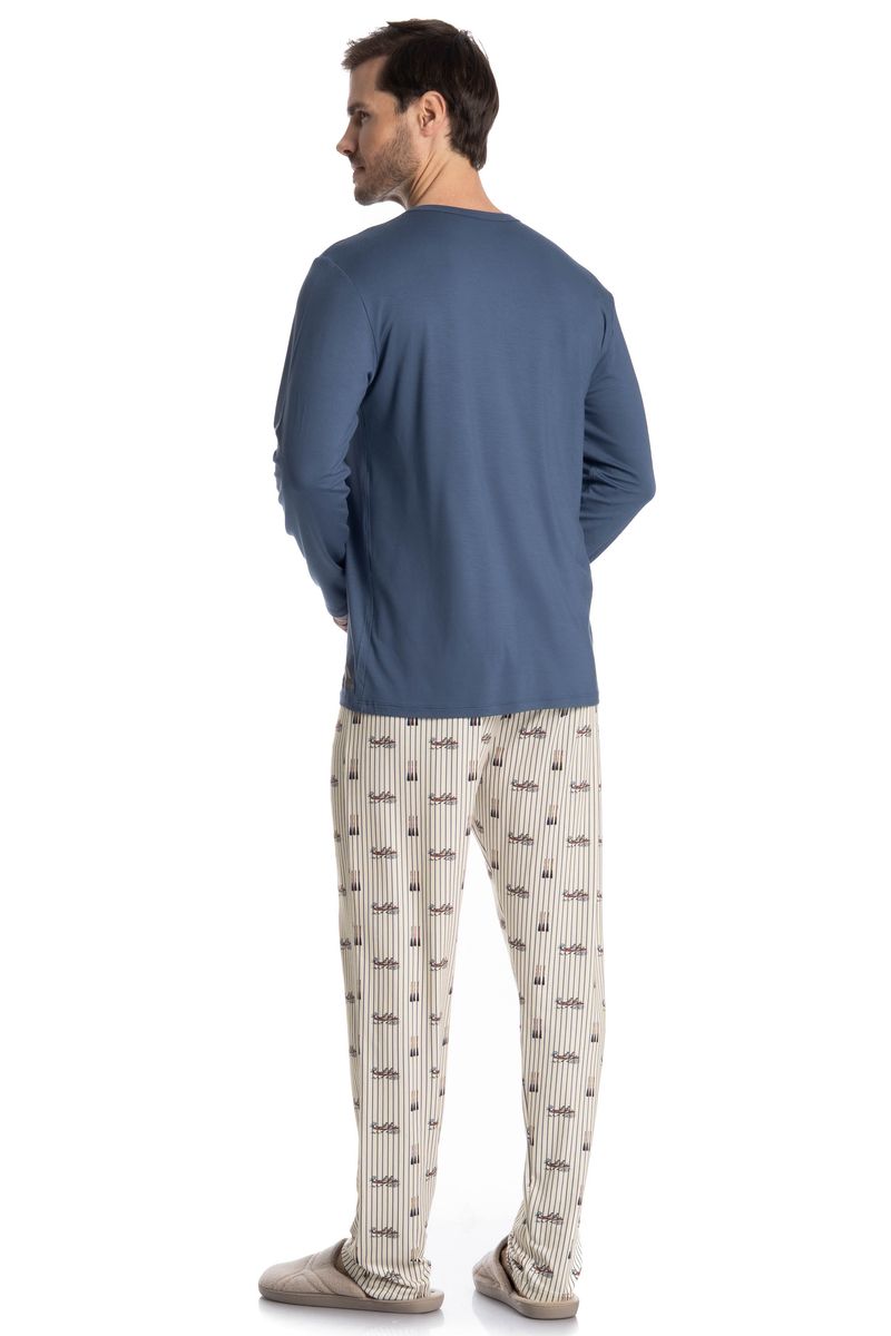 Elegante e confortável, o Pijama Longo Masculino Remo é perfeito para noites de descanso com estilo. A blusa lisa possui gola com botões, trazendo praticidade ao vestir e um toque clássico ao visual. Confeccionada em tecido macio, garante conforto térmico e ótimo caimento. A calça é o destaque do conjunto, com estampa náutica delicada sobre fundo claro, que adiciona charme e personalidade à peça, além de proporcionar um visual leve e sofisticado. Ideal para quem busca conforto, funcionalidade e um design atemporal para os momentos de descanso.