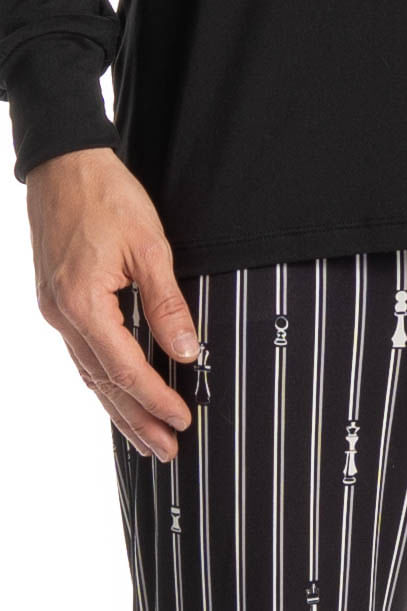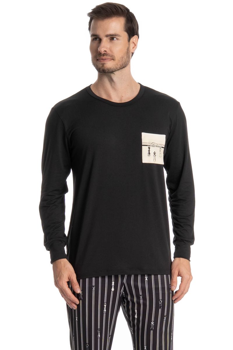 Pijama Longo Masculino Xadrez é perfeito para seu inverno! Sua blusa lisa em modelagem ampla e confortável, possui decote redondo com aplicação de gola e mangas longas com punho. Detalhe para seu bolso na lateral esquerda com peças de Xadrez e com a escrita Checkmate. Sua calça é ampla e também muito confortável com punhos impedindo que a peça suba durante a noite.