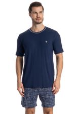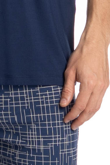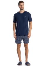 Pijama Masculino Curto Luigi é excelente para suas noites! Em modelagem muito confortável, sua blusa manga curta possui decote em V com acabamento em viés com trançador contrastante. Detalhe para seu bordado logo Tombini na lateral esquerda. Seu short muito confortável e possui uma linda estampa. Perfeito para quem valoriza conforto, praticidade e um visual leve!