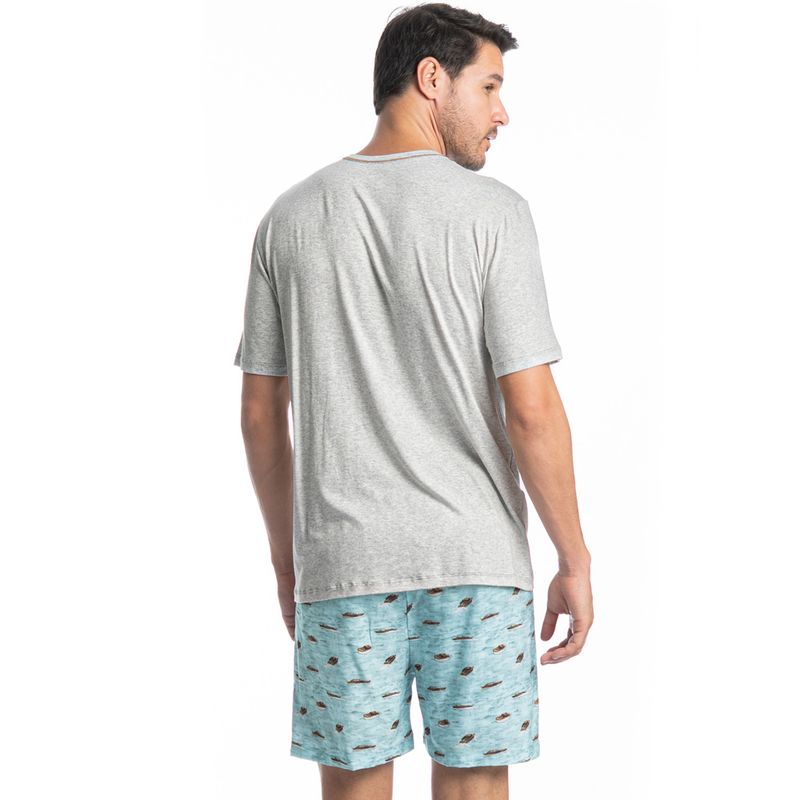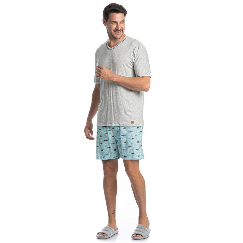 Pijama Masculino Curto Al Mare Tombini é estilo para as suas noites! A blusa em manga curta possui uma modelagem ampla, confortável e aconchegante com trançador de tom contrastante no decote. Detalhe para a etiqueta personalizada Tombini na leteral inferior esquerda da peça. Seu Short em modelagem ampla é todo estampado com uma divertida estampa de taxi veneziano, e possui elástico macio proporcionando uma noite confortável.