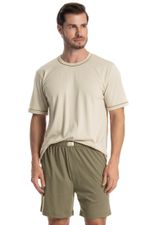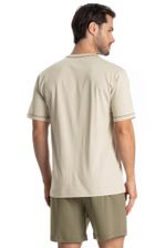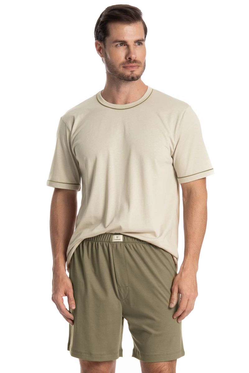 Pijama Masculino Curto Dado é puro conforto! Sua Blusa manga curta, com modelagem ampla e confortável, possui decote redondo com acabamento em gola e trançador de tom contrastante. Seu shorts em comprimento curto e modelagem ampla, possui elástico macio no cós para maior conforto. Detalhe da etiqueta Tombini no centro do cós. Muito estilo para estar com você nos melhores momentos!