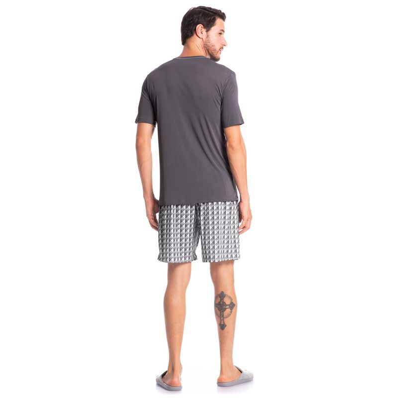 Pijama Masculino Curto Estampado Clóvis Tombini é o clássico com estilo que você gosta! Sua blusa manga curta, é lisa com decote em V e possui detalhe em trançador contrastante. Conta com diferentes cores para te deixar ainda mais confortável e estiloso nos melhores momentos! Confeccionada em Liganete Microfibra Amni, tecido de poliamida característico pelo seu toque de malha fria, caimento leve e de fácil cuidado. A composição do tecido conta com a excelência do fio Rhodia Amni de alta qualidade.