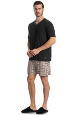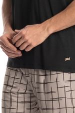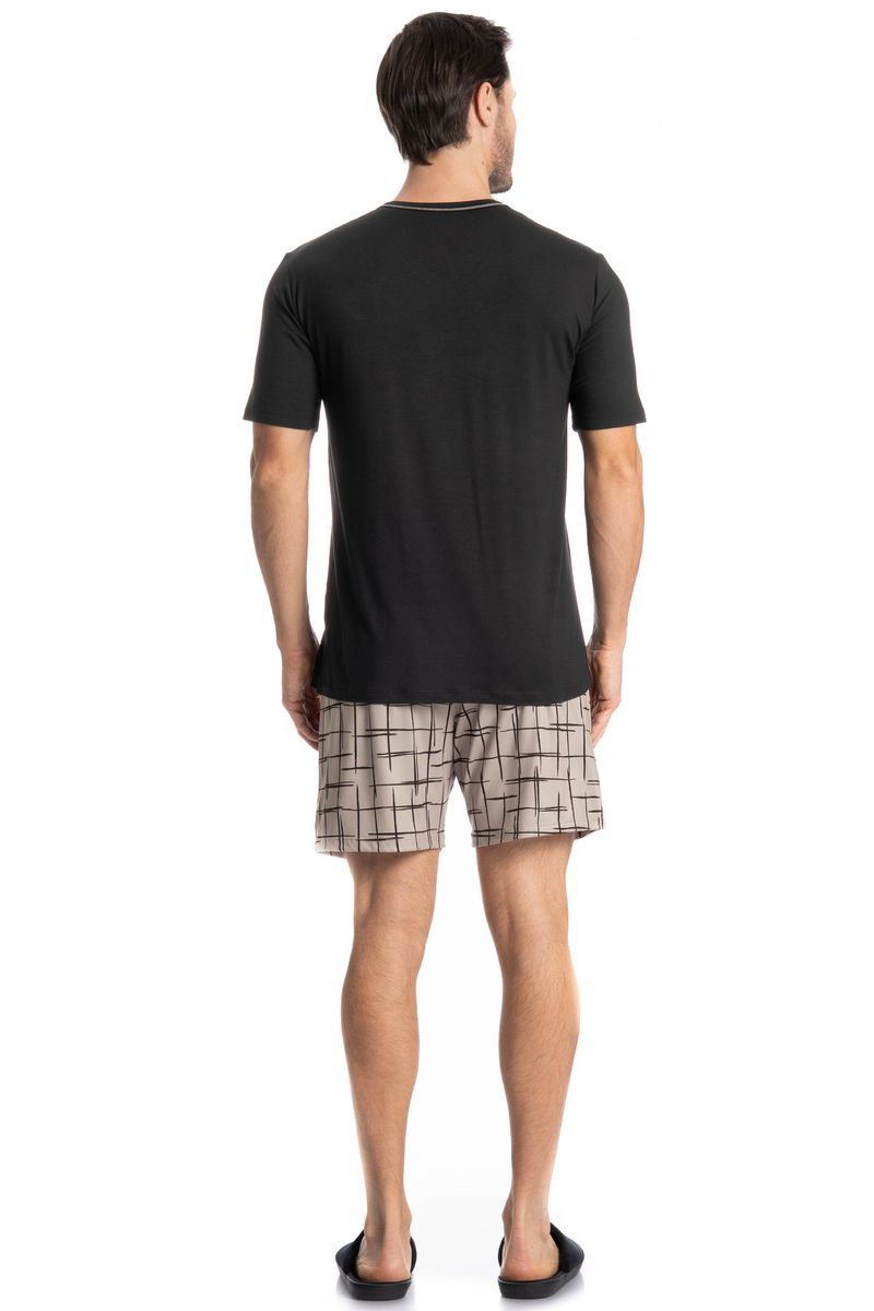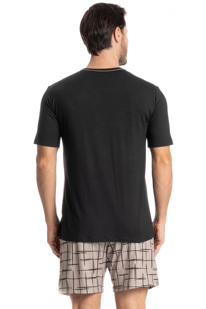 Pijama Masculino Curto Felipe é perfeito para as noites mais quentes! Em modelagem muito confortável, sua blusa manga curta possui decote em V com acabamento em viés com trançador de tom contrastante. Detalhe para seu bordado Tombini na lateral inferior esquerda. Já o seu shorts em modelagem ampla e confortável, é todo estampado e possui elástico macio no cós que garante muito conforto para as horas de descanso!
