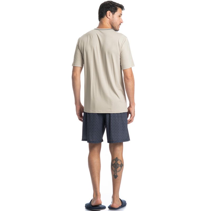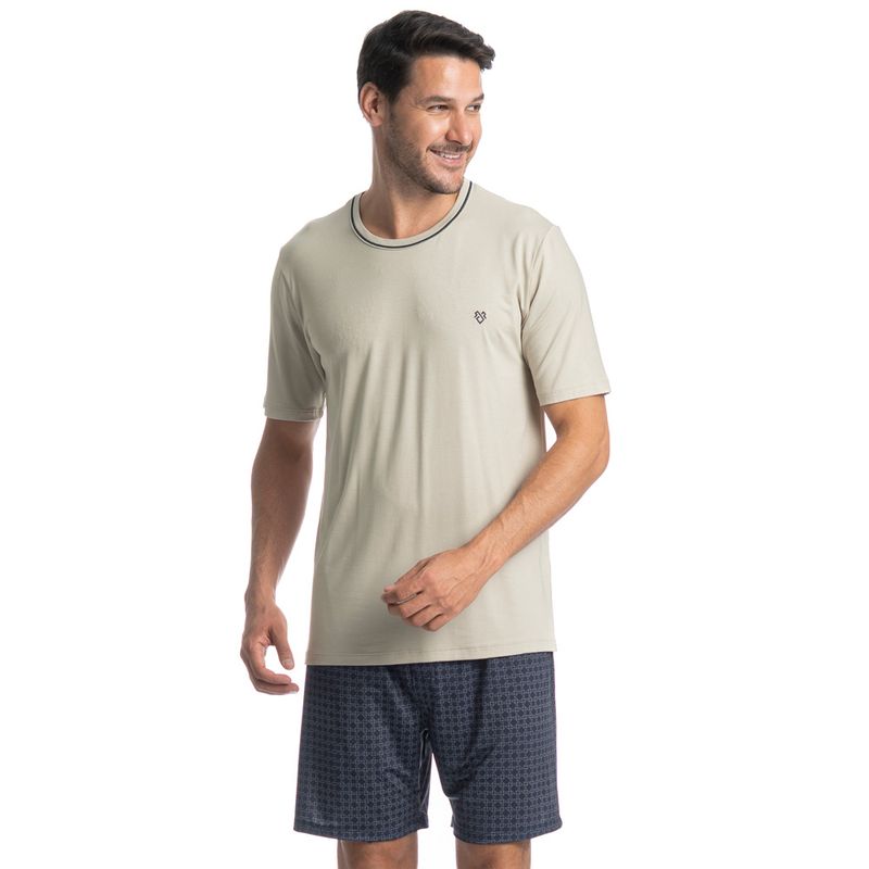 Pijama Masculino Curto Joaquim Tombini é excelente para suas noites! Em modelagem muito confortável, sua blusa manga curta possui decote redondo debruado em viés com trançador de tom contrastante. Detalhe para seu bordado logo Tombini na lateral esquerda da peça. Seu short muito confortável, possui uma moderna estampa exclusiva. Muito estilo e conforto para estar com você nas melhores horas do seu dia!
