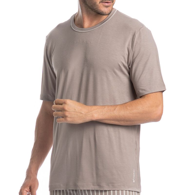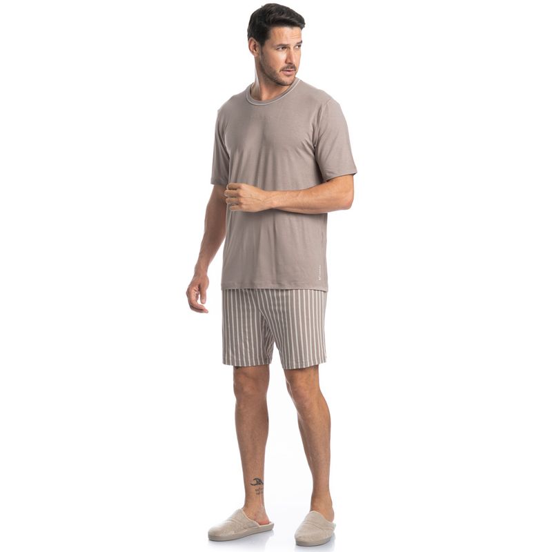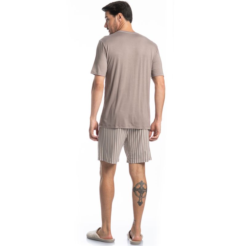Pijama Masculino Curto Mateo Tombini é excelente para os dias mais quentes! A blusa possui uma modelagem confortável, manga curta com decote redondo e trançador de tom contrastante. Detalhe para o bordado exclusivo Tombini na lateral inferior esquerda. Seu Short é todo estampado em uma moderna e exclusiva listra. Muito estilo e conforto para estar com você nos melhores momentos!